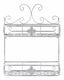 Tato malá, ale prostorná závěsná police vám pomůže zorganizovat prostor v koupelně. Kovový stojan se dvěma poličkami je vhodný pro skladování kosmetiky, toaletních potřeb a jiných drobných předmětů. Pokud polici zavěsíte vedle zrcadla nebo ji připevníte nad toaletu, bude praktickým i dekorativním prvkem v místnosti. Díky ozdobnému rámu s opotřebovaným vzhledem police dokonale zapadne do interiérů ve vintage a venkovském stylu.