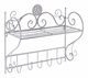 Kovová dekorativní nástěnná police, která může ozdobit koupelnu i předsíň. Díky vintage designu krásně doplní místnosti zařízené v retro nebo rustikálním stylu. Horní polička je ideálním místem pro vystavení doplňků či kosmetiky a pět praktických háčků využijete k zavěšení županu, ručníků nebo koše na prádlo. Na chodbě zas poslouží jako polička na čepice a šály a jako věšák na bundy.
