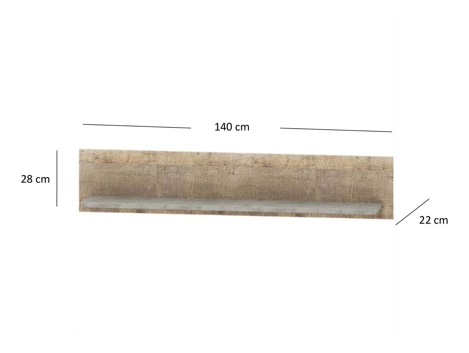 Polička 140 cm Bennie (šedá + dub pískový)