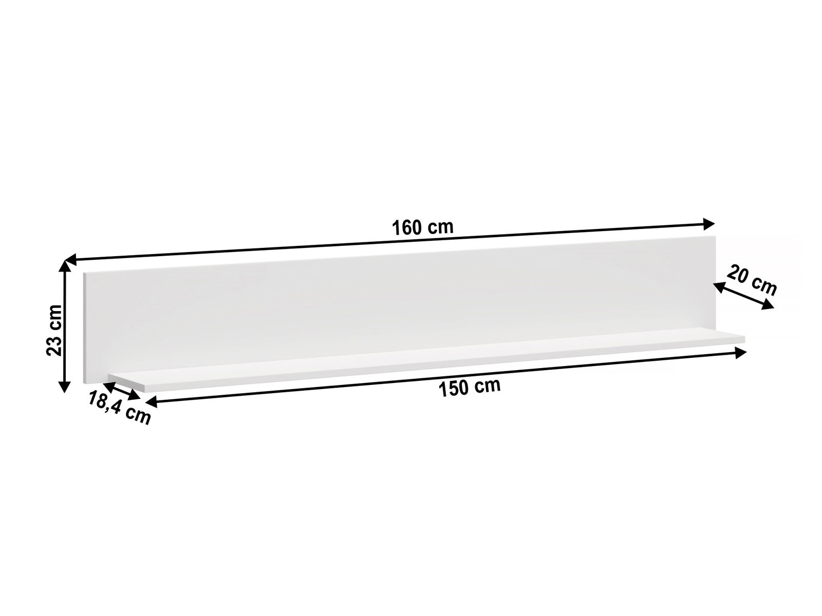 Nástěnná polička Otis se šířkou 160 cm je praktickým řešením pro váš interiér. S její výškou 23 cm a hloubkou 20 cm poskytuje dostatek místa pro uložení vašich dekorací, knih a fotografií. a vytvořte si praktický a stylový úložný prostor.