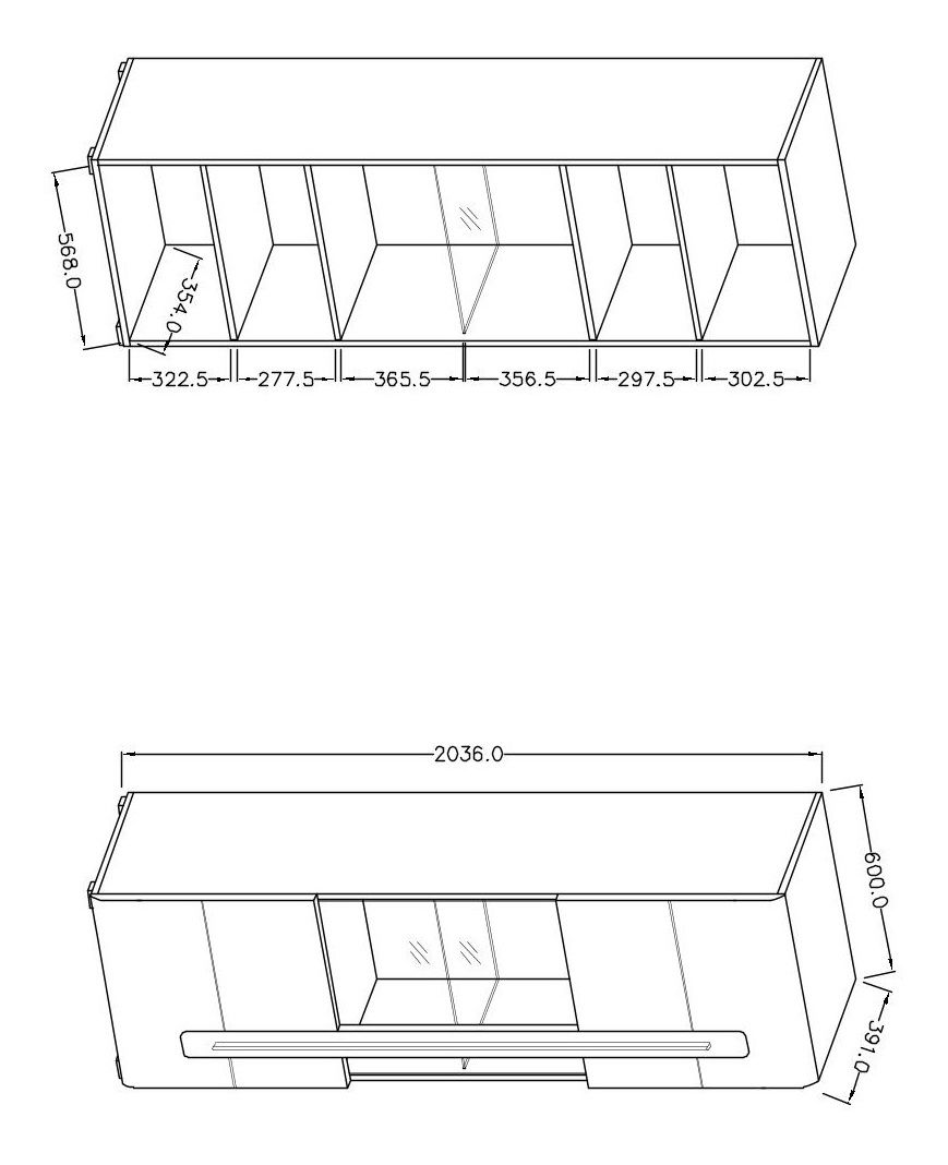 Polička 180 cm Tashia Typ 02 (bílá + vysoký lesk bílý)