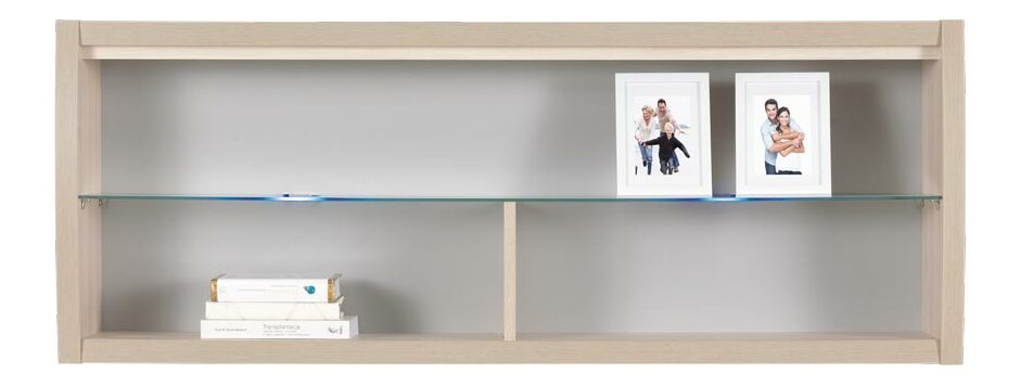 Police s upevněním na stěnu Axel A 16 se skleněnou poličkou. Poličku lze efektně podsvítit LED světlem. Upevnění na zeď je řešeno pomocí dvou plastových vsuvek s kovovými háčky na straně police a šrouby s hmoždinkami na straně stěny (vše součástí balení).