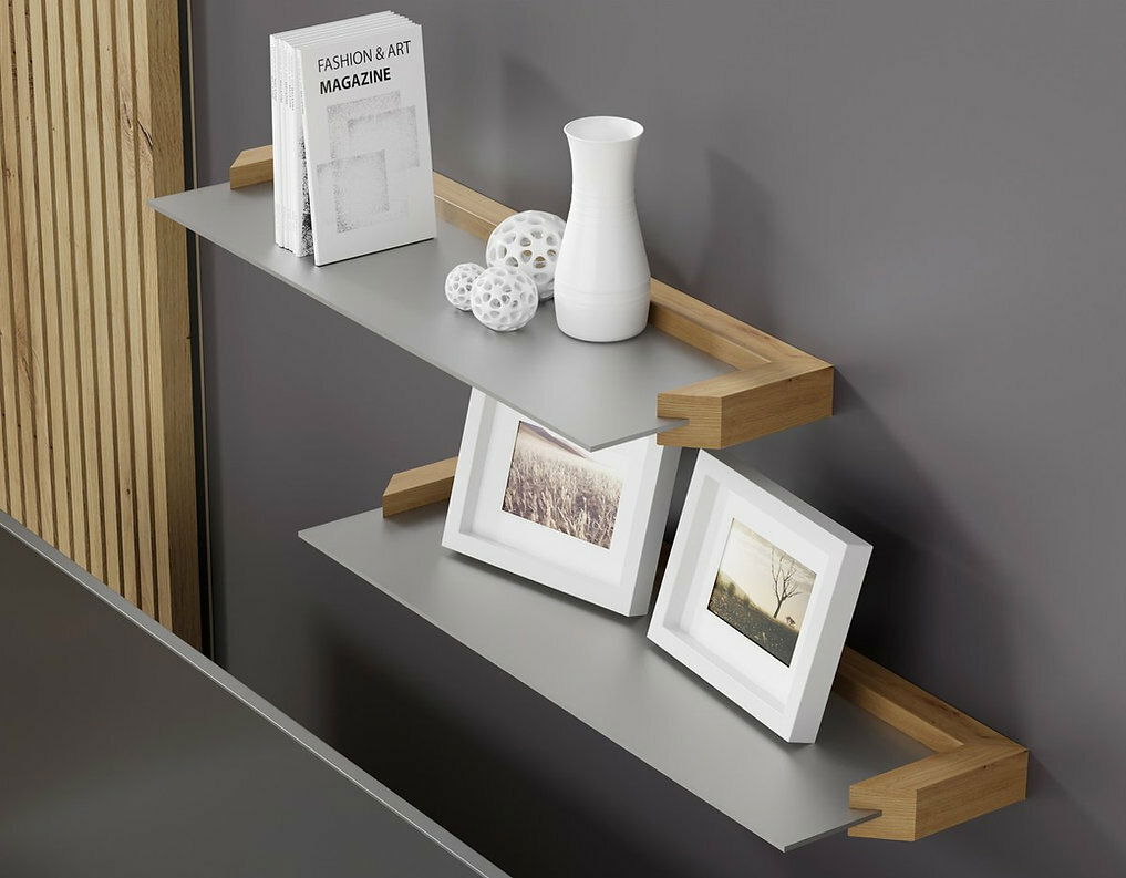 Vyrobeno z odolného MDF a tvrzeného skla, tyto police nabízejí trvanlivost i elegantní vzhled. Jejich všestranný design umožňuje jejich použití v různých místnostech, jako je obývací pokoj, ložnice nebo jídelna, a perfektně doplňují ostatní nábytek z kolekce.
