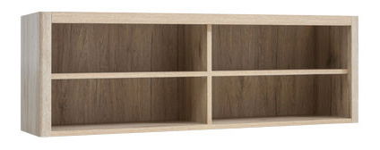 Polička jednoduchého designu rozdělena dvěma příčkami na čtyři menší části. Do poliček si můžete dát oblíbené dekorační předměty nebo jiné doplňky. Poslouží jako vhodný doplněk do obývacích pokojů, ložnic a pracoven.