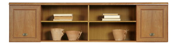 Uzavřená polička v krásném rustikálním provedení, která má skříňky na levé a pravé straně a čtyři otevřené poličky. Hodí se do vašich ložnic, obývacích pokojů nebo i studentských pokojů. Umístěte si do ní vaše oblíbené dekorační předměty, knížky, CD s hudbou a jiné doplňky.