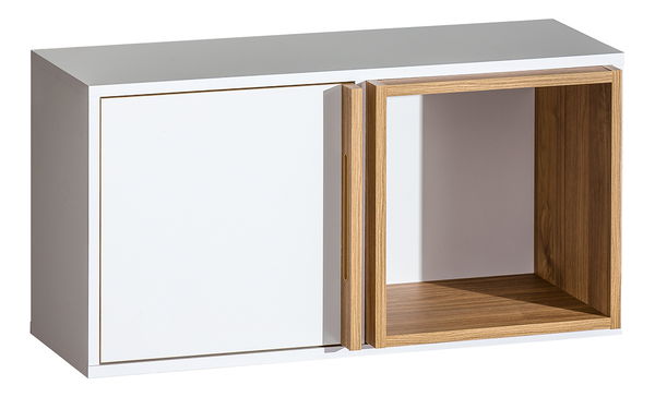 Polička Evanton je vlastně polička a skříňka v jednom. Část je otevřena ideální na dekorace, fotky a pod. Druhá část má dvířka a tak se na ni dají uložit i věci, které nechcete mít na očích. Díky tomuto řešení je polička praktická a zároveň i designově zajímavá.