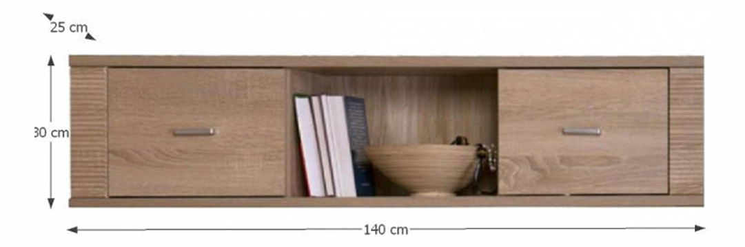 Polička Gary Typ 15 2D výška 30 cm hloubka 25 cm Dub Sonoma je závěsná skříňka na zeď se dvěma dvířky po stranách a jednou poličkou uprostřed. Sektorový nábytek GrandNábytek je vyroben z kvalitní laminované DTD v odstínu svěžího Dubu Sonoma, který se skvěle hodí do světlých a větších prostor jako je obývací pokoj, ložnice, reprezentativní pracovna nebo předsíň. Hrany jednotlivých komponent jsou ukončeny vroubkovanou lištou. Polička Gary Typ 15 2D má rozměry 139,2x25x33 cm, tloušťku materiálu korpusu 16 mm, vrchní a spodní desky 22 mm a je dodávána v demontu. Tato dvoudveřová skříňka je skvělým řešením pro uskladnění Vašich věcí a zároveň může být i dekorací Vašeho interiéru.