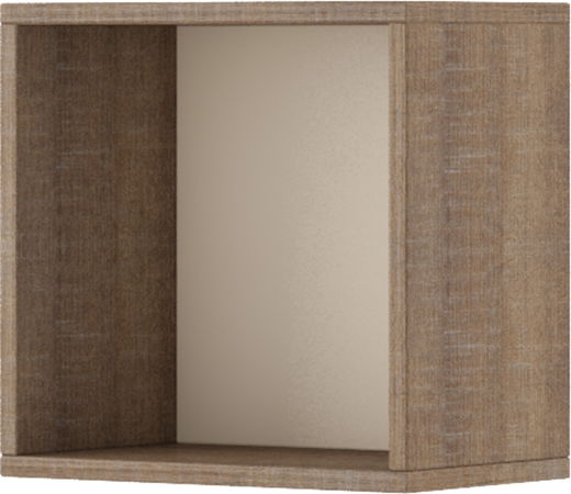 Jednoduchá čtvercová dvoubarevná závěsná polička na stěnu.