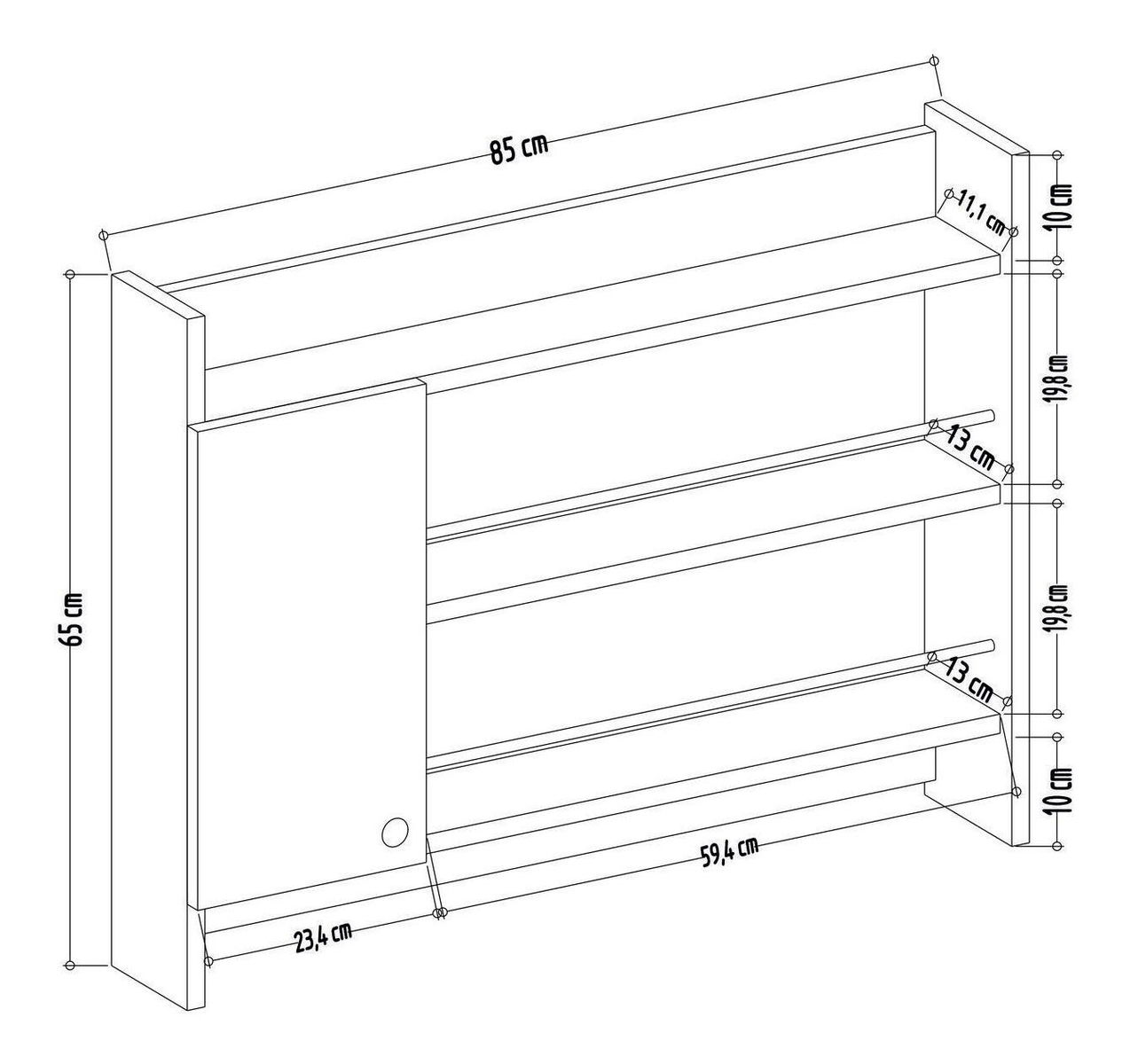 tloušťka: 18 mm, šířka: 85 cm, hloubka: 15 cm, výška: 65 cm