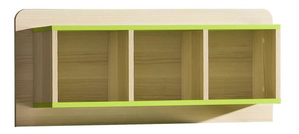 Jednodušší polička rozdělena na tři stejné části. Polička má zaoblené rohy a příjemné barevné prvky, které vytvoří příjemnou atmosféru v dětském či studentském pokoji.