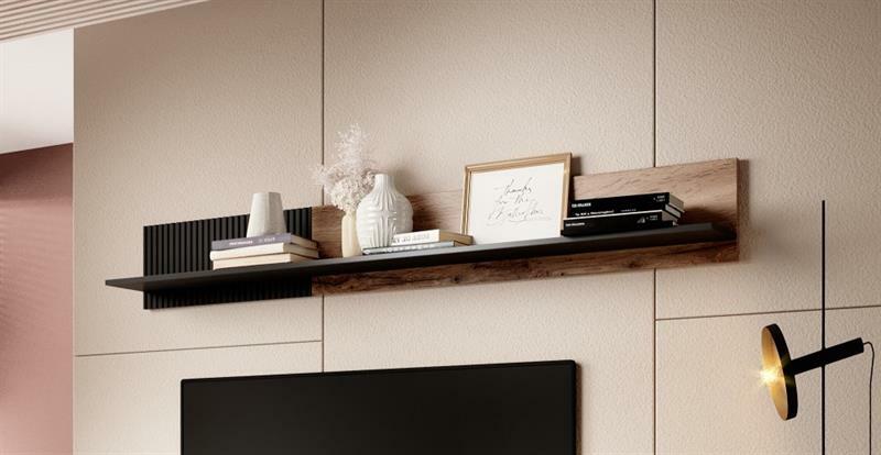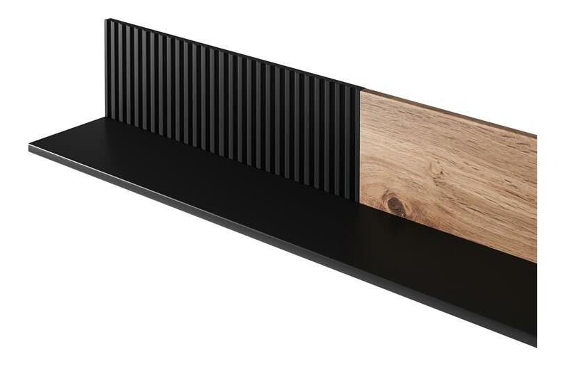 Polička Ranae P2 (dub wotan + černá) je moderní a funkční nábytek pro každý domov. Vysoká 25 cm a hluboká 20 cm, tato polička nabízí dostatek prostoru pro uskladnění vašich oblíbených předmětů. hodí k jakémukoli designu interiéru. Je to ideální doplněk pro každou místnost, ať už ji. umístíte do obývacího pokoje nebo do ložnice. Polička Ranae P2 je robustní, stabilní a jednoduchá na instalaci. pro vás to pravé.