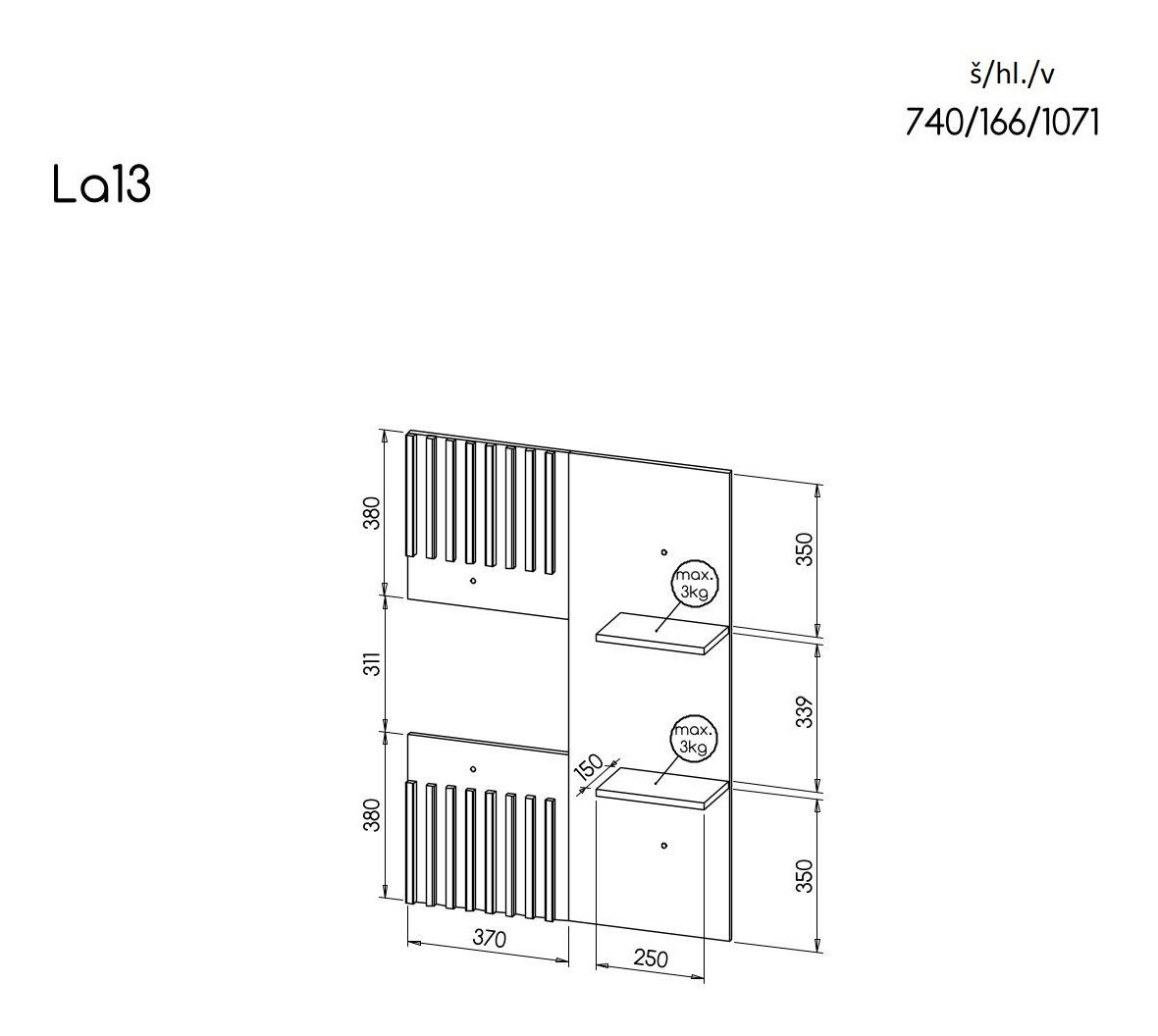 Polička typ LA13 Laticia (matná černá + dub wotan)