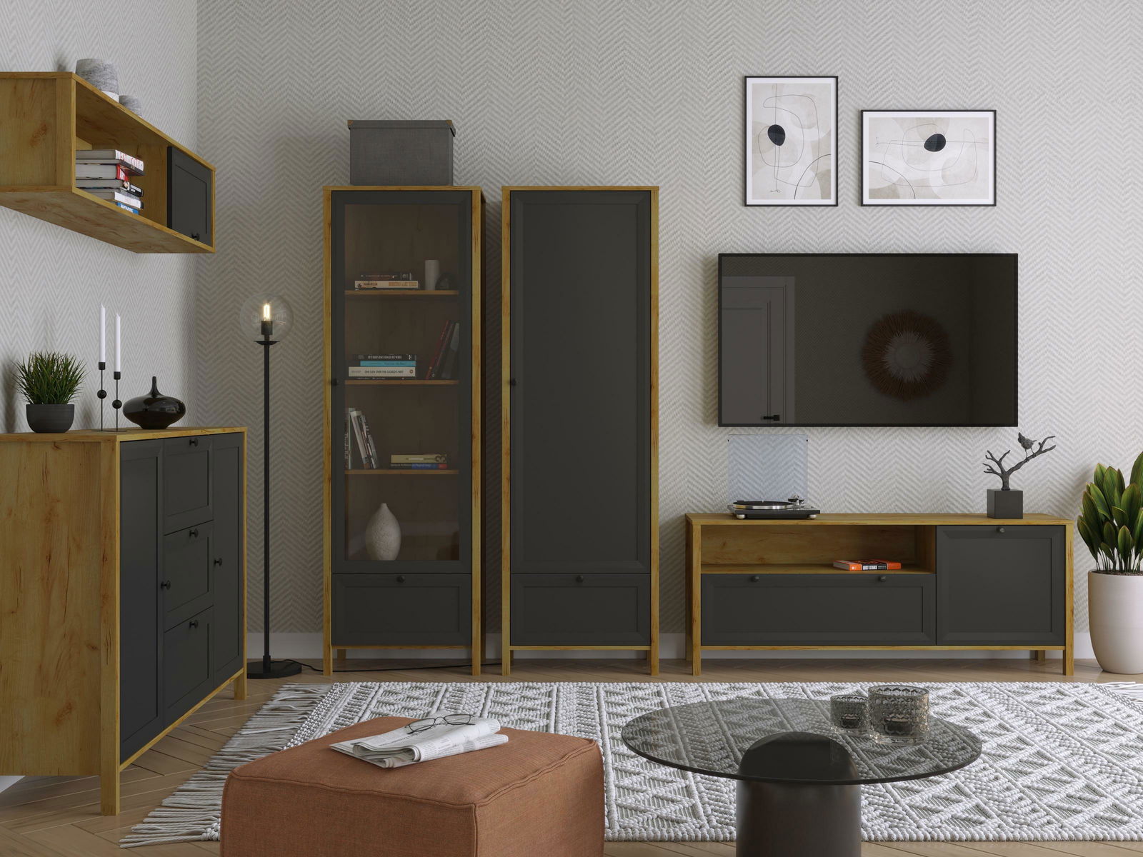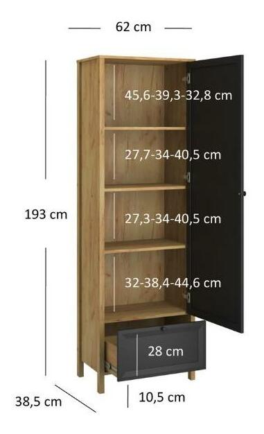 Policová skříň Bruselas (dub craft zlatý + černá)