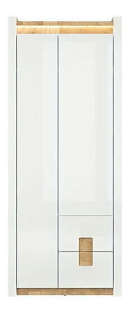 Užší dvoudveřová skříň se třemi velkými policemi a jednou malou nabízí dostatek prostoru. Neutrální barevné provedení v kombinaci bílý lesk a se světlými akcenty dřevodekoru dodá vašemu interéru moderní vzhled. V pravé dolní části se nacházejí dvě praktické zásuvky. Materiál: Nábytková deska. Komoda disponuje bezúchytové otevíráním dvířek a při instalaci můžete LED osvětlení..
