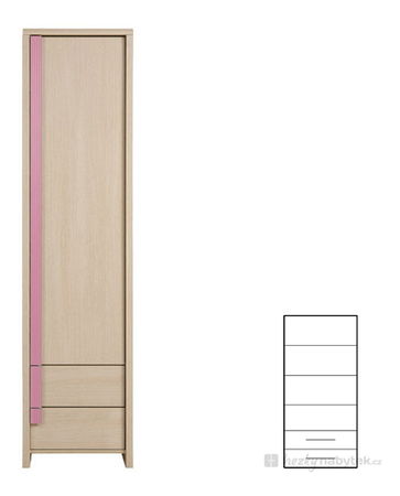 Univerzální kolekce, která je určena pro mládež. Skládá se ze 16 - ti prvků v barvě dub jasný Belluno se dvěma barevnými verzemi lištových úchytek (modrá, růžová) podle kterých můžete vytvořit pokoj pro chlapce i pro dívku.
