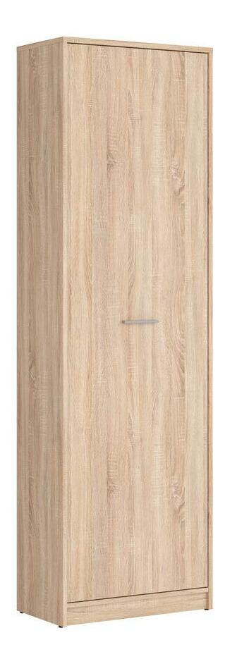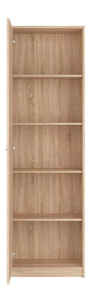 ZobrazitPolicová skříň Nepo Plus 22 je vyrobena z kvalitního lamina o síle 1,6 cm. Nadčasový dekor dub sonoma oceníte nejen v dětském pokoji nebo pracovně. Ke snadnému otevírání dvěří slouží stříbrná úchytka z tvrzeného plastu. Variantu otevírání dveří si můžete zvolit dle potřeb při montáži. Zvolit lze levou či pravou variantu otevírání. Vnitřní vybavení skříně tvoří 4 police o rozměrech š. 56 x hl. 31 cm.