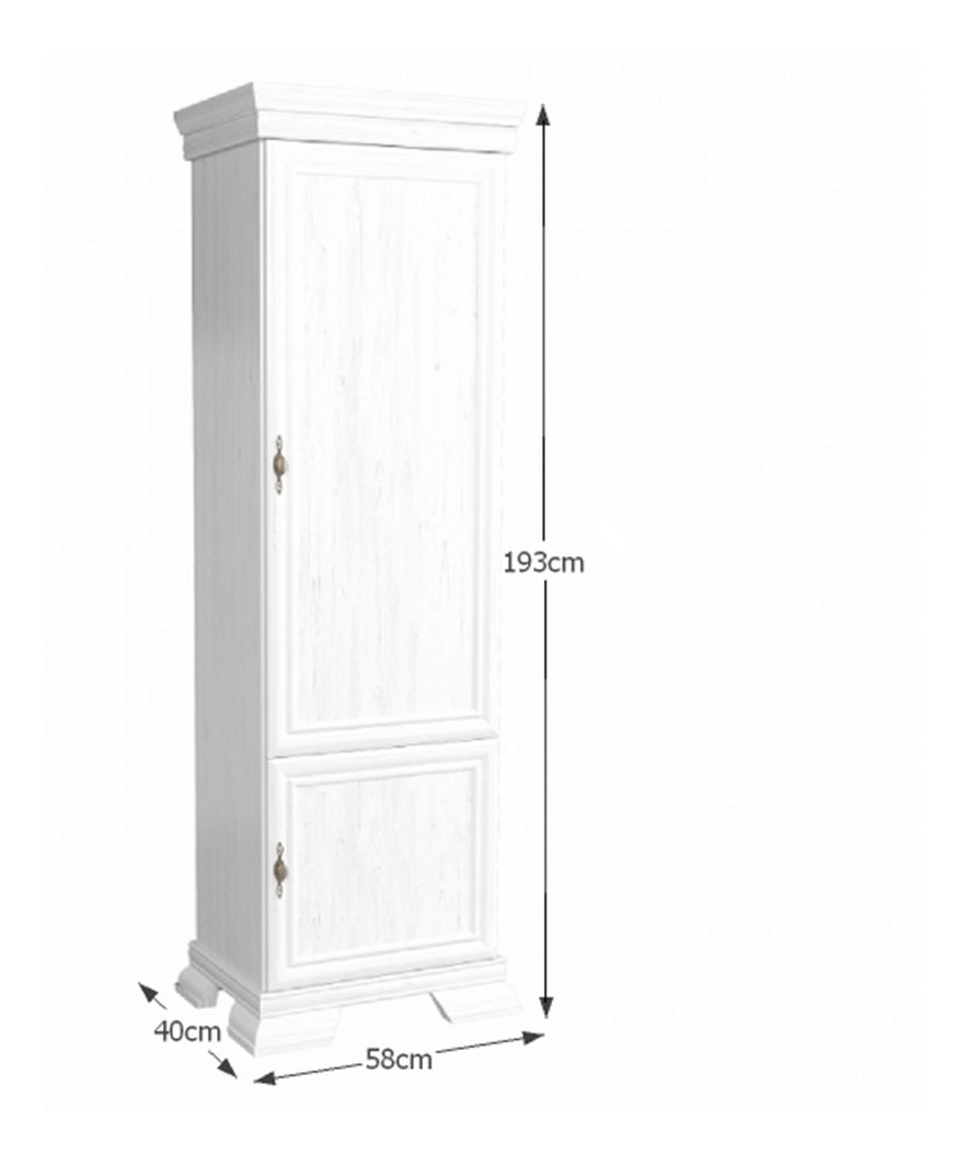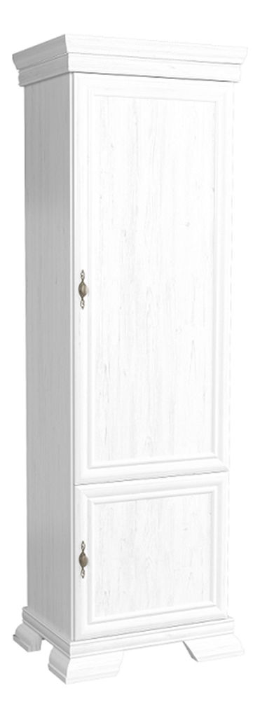 Vysoká jednodveřová skříň Kraz s malými dvířky ve spodní části. Skříň je masivního vzhledu, má vyřezávané nožičky a lišty a kovové úchyty na dvířkách. Zařídíte si s ní obývací pokoje, pracovny nebo jídelny. Skříň je v barevném provedení sosna andersen.