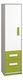 Vysoká a úzká policová skříň má v horní části čtyři police a v dolní jednu velkou a jednu malou zásuvku.
