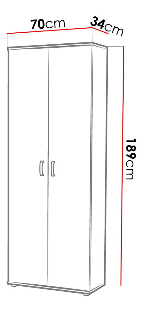 ZobrazitMavelas dvoudveřová šatní skříň s policemi je malý model, který bude ideální pro malé místnosti, například do haly nebo ložnice. Šířka šatníku je 70 cm a hloubka 34 cm. Interiér šatníku nabízí řadu prostorných polic. Kromě toho křídlové dveře fungují lehce a můžete je otevřít pomocí ozdobných klik z plastu. Šatní skříň Menas se sklopnými dveřmi je k dispozici v univerzálních barvách.