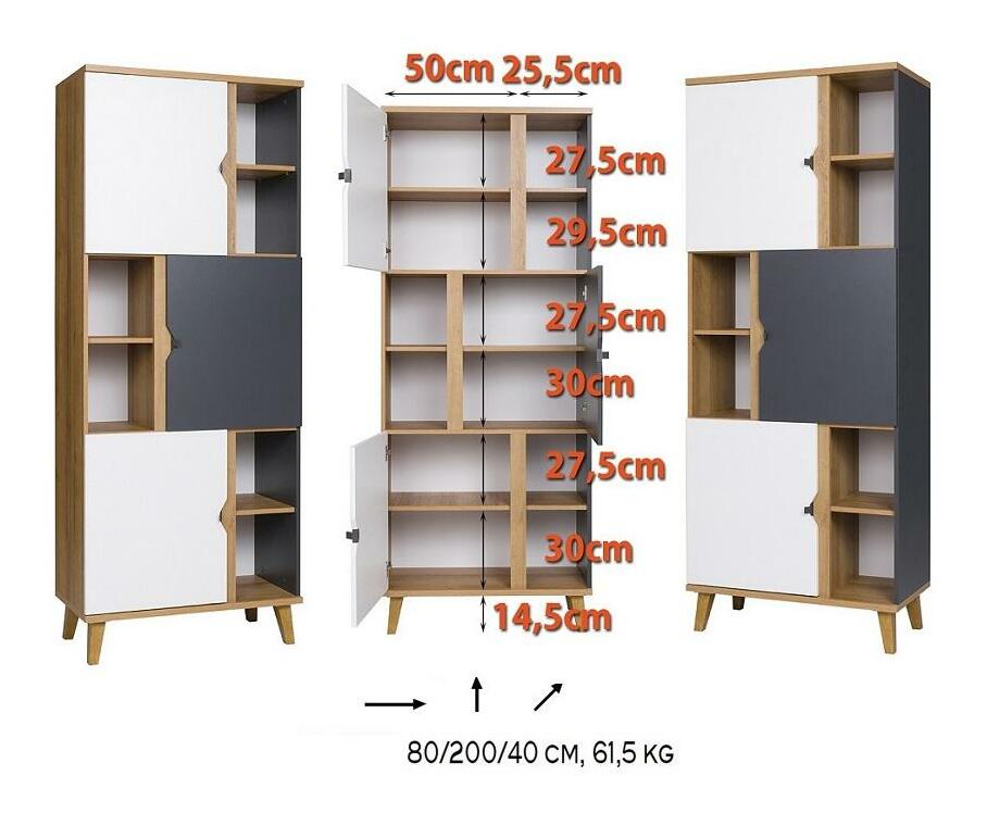 Policová skříň Mimone R3D v dubovém zlatě, bílé matné a grafitové barvě o výšce 200 cm a hloubce 40 cm je ideálním doplňkem do vašeho interiéru. Skříň je vyrobena z kvalitního materiálu a je vybavena ABS hranami a kovovými úchyty, které zajišťují dlouhodobou trvanlivost a praktické používání. Skříň obsahuje lišty a plastové nohy pro snadné přesouvání. Skříň se dodává ve třech balících, přičemž první balíček má rozměry 183,5x41x5,5 cm/24,5 kg, druhý balíček má rozměry 96x45x12,5 cm/27 kg a třetí balík má rozměry 63x54x5 cm/10 kg. Tato policová skříň nabízí dostatek úložného prostoru a dokáže skvěle doplnit váš domov a zvýšit jeho estetickou hodnotu.