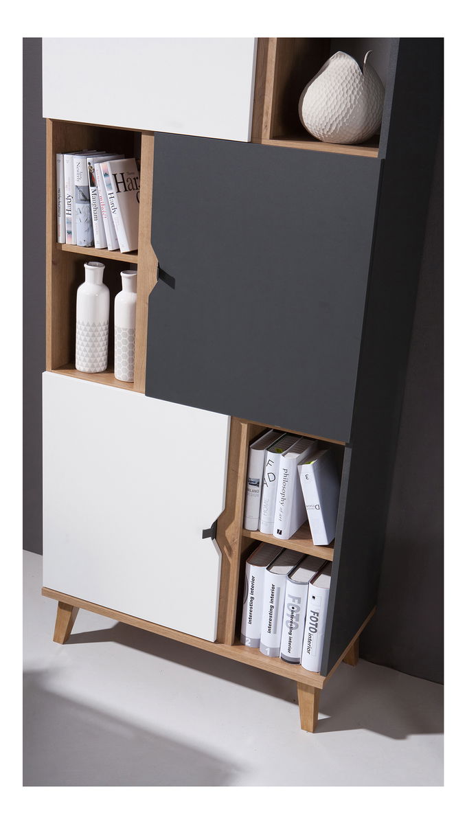 Policová skříň Mimone R3D (dub zlatý + bílá matná + grafit)