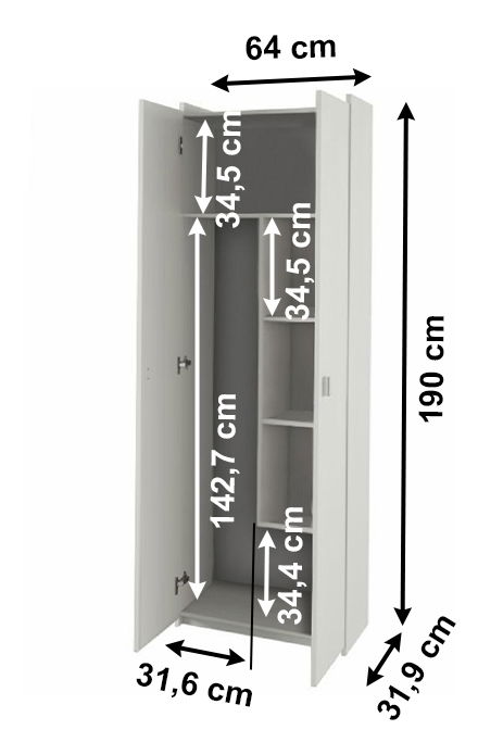 Policová skříň Nariel Typ 6 (bílá) o výšce 190 cm a hloubce 32 cm nabízí dostatek úložného místa pro Vaše věci. Ideální řešení pro menší prostory. Vnitřek skříně sestává z polic a horní police. Materiál skříně je laminována DTD o tloušťce 16 mm. Barevné provedení skříně je bílá. Rozměry skříně jsou 64x31,9x190 cm. Každá police má výšku 34,5 cm, spodní police má výšku 34,4 cm a horní police má výšku 142,7 cm. Skříň je dodávána v demontu. S touto kombinovanou skříní získáte nejen dostatek úložného prostoru, ale také moderní a elegantní nábytek do Vašeho interiéru.
