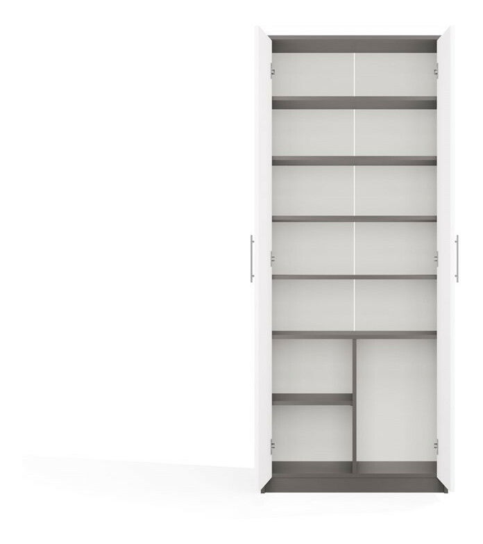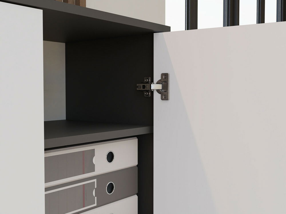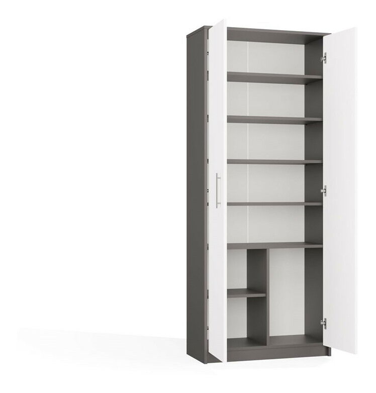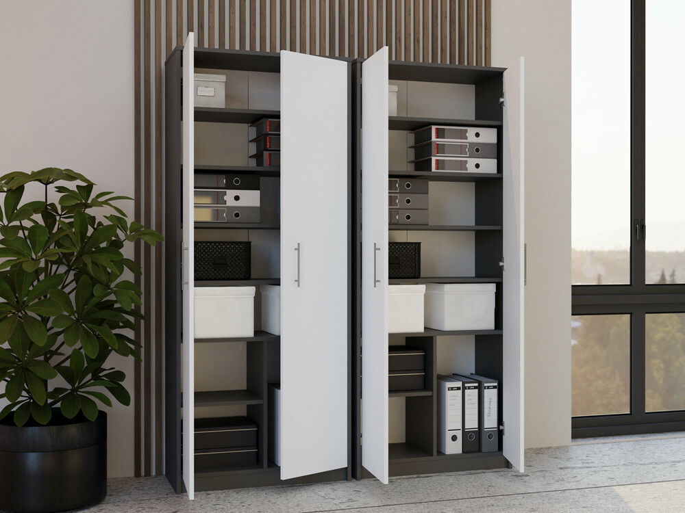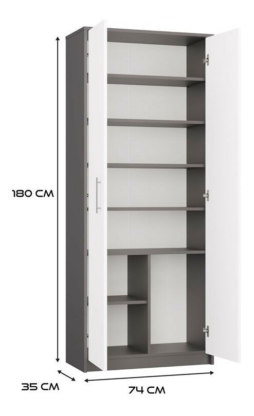 ZobrazitPolicová skříň Obtenidas 1 v moderním antracitovém a bílém provedení je ideálním řešením pro každý interiér. S osmi praktickými poličkami a dvěma zamykacími dveřmi nabízí dostatek úložného prostoru pro dokumenty, knihy či dekorace. Minimalistický design a kvalitní laminovaná deska o tloušťce 16 mm zajišťují nejen estetický vzhled, ale také odolnost vůči poškrábání a vlhkosti. Tento nábytek je skvělou volbou do kanceláře, obývacího pokoje nebo dětského pokoje, přičemž jeho snadná údržba zaručuje dlouhou životnost.