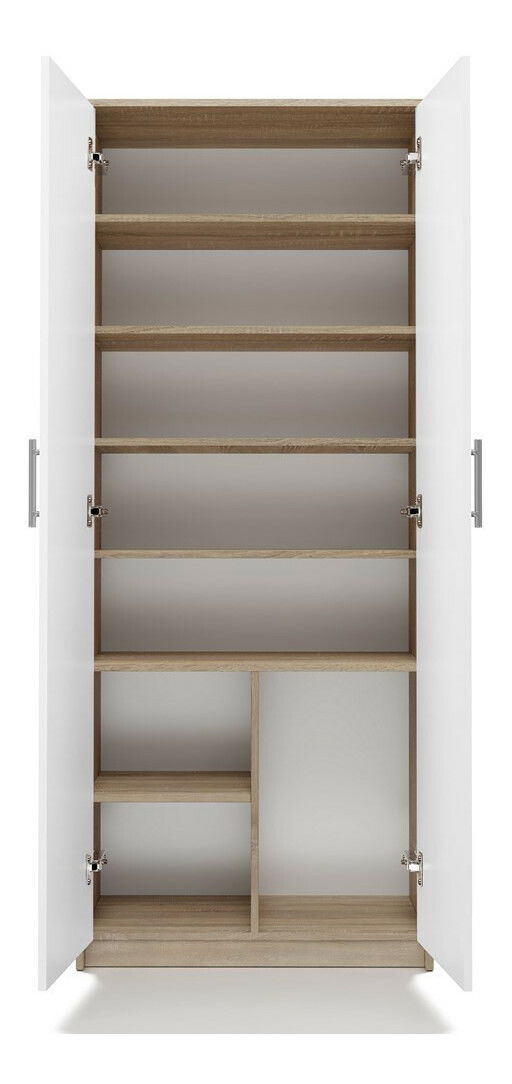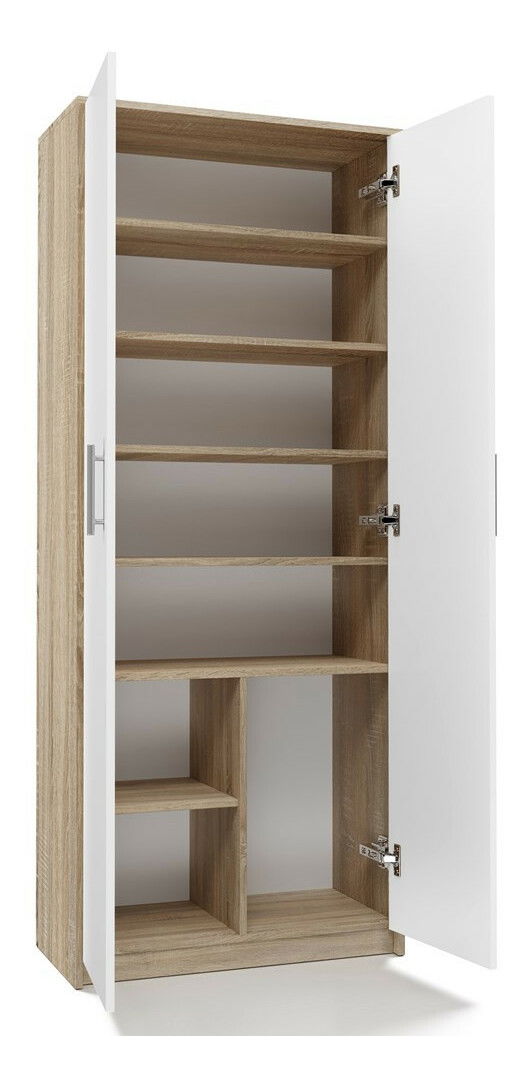 ZobrazitPolicová skříň Obtenidas 1 v elegantní kombinaci bílé a dubu sonoma je ideálním řešením pro moderní interiéry. S osmi praktickými policemi a dvěma dveřmi nabízí dostatek úložného prostoru pro dokumenty, knihy či jiné předměty, přičemž minimalistická konstrukce a čisté linie zajišťují nadčasový vzhled. Vyrobeno z kvalitní laminované dřevotřísky s ABS hranami, skříň je odolná vůči poškrábání a vlhkosti, což zaručuje její dlouhou životnost. Tento funkční a estetický nábytek se hodí do obývacího pokoje, dětského pokoje či kanceláře.