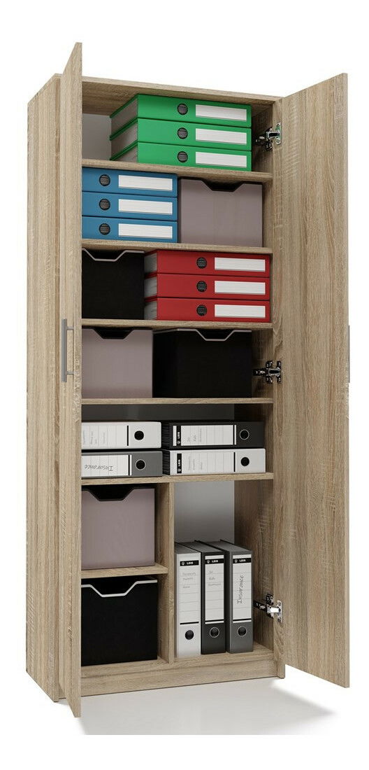 ZobrazitPolicová skříň Obtenidas 1 v elegantní barvě dub sonoma je ideálním řešením pro moderní interiéry, kde je kladen důraz na funkčnost a estetiku. S osmi praktickými poličkami a dvěma dveřmi nabízí dostatek prostoru pro uskladnění dokumentů, knih či jiných předmětů, přičemž minimalistická konstrukce a kvalitní laminovaná deska o tloušťce 16 mm zajišťují její odolnost vůči poškrábání a vlhkosti. S pevným provedením a bez viditelných otvorů na boku se skříň stává stylovým doplňkem do obývacího pokoje, dětského pokoje nebo kanceláře.