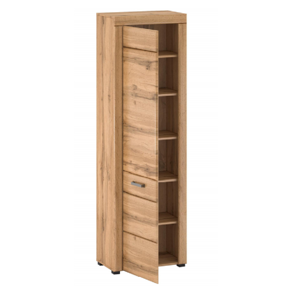 Policová skříň Palper V je ideální pro úložbu vašich věcí v každé místnosti. Tato skříň má jednodveřový design a je zhotovena z kvalitního dubu apalačského o tloušťce materiálu 19 mm. Skříň má celkovou výšku 196 cm a hloubku 37 cm. Má 5 polic s nosností 5 kg každá, čímž poskytuje dostatek prostoru pro uspořádání věcí ve skříni. Skříň má také elegantní nožičky a kovovou úchytku. Výška spodního prostoru od podlahy je 2,5 cm, což zajišťuje, že se věci skryjí pod skříní a jsou v bezpečí před poškozením. Tato policová skříň je uzavřena a poskytuje dostatek místa pro uložení věcí v každé místnosti vašeho domova.