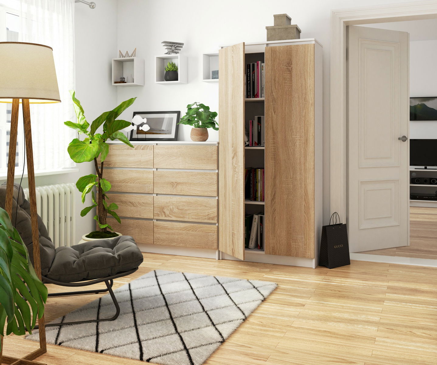 Zobrazitkancelářských prostorách je mimořádně důležité, aby všechno mělo své místo. Skvělým způsobem, jak zabránit nepořádku a chaosu, je moderní policová skříň Rainer II. Je vybavena 8 prostornými policemi, do kterých se snadno vejde vše nejdůležitější a dvířka je ochrání před zbytečným sbíráním prachu. Nábytek je vyroben z laminované desky odolné vůči oděru, která zaručuje odolnost a dlouhodobé používání. Hrany jsou navíc chráněny ABS lemováním, díky kterým bude nábytek vždy vypadat dobře i po velmi intenzivním každodenním používání. Klasický vzhled se bude hodit do moderních minimalistických prostor, ale bude se hodit i do poněkud extravagantnějších interiérů. Dostupný iv jiných barevných provedeních.
