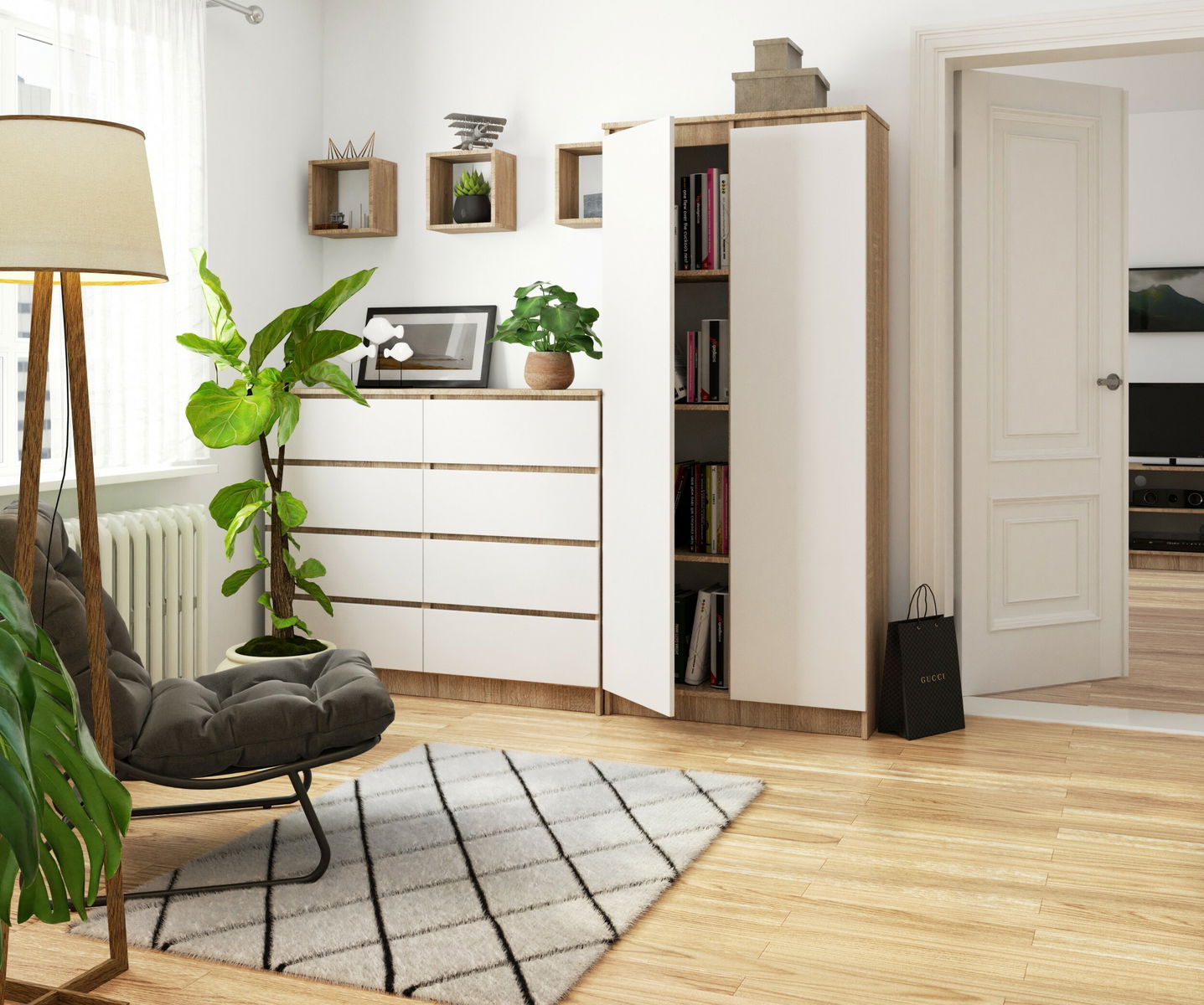 Zobrazitkancelářských prostorách je mimořádně důležité, aby všechno mělo své místo. Skvělým způsobem, jak zabránit nepořádku a chaosu, je moderní policová skříň Rainer II. Je vybavena 8 prostornými policemi, do kterých se snadno vejde vše nejdůležitější a dvířka je ochrání před zbytečným sbíráním prachu. Nábytek je vyroben z laminované desky odolné vůči oděru, která zaručuje odolnost a dlouhodobé používání. Hrany jsou navíc chráněny ABS lemováním, díky kterým bude nábytek vždy vypadat dobře i po velmi intenzivním každodenním používání. Klasický vzhled se bude hodit do moderních minimalistických prostor, ale bude se hodit i do poněkud extravagantnějších interiérů. Dostupný iv jiných barevných provedeních.