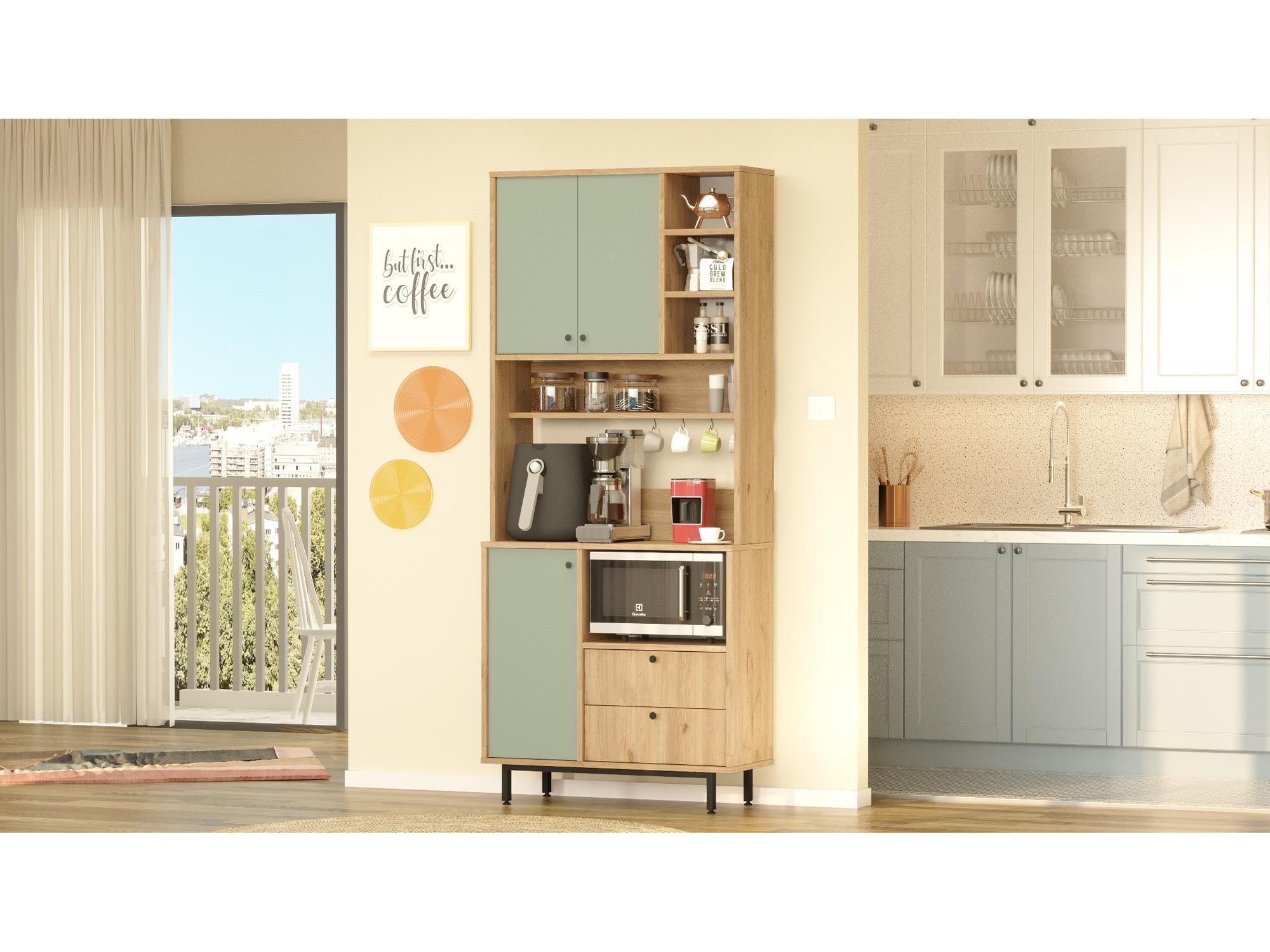Policová skříň Rebutia 6 (dub + zelená)