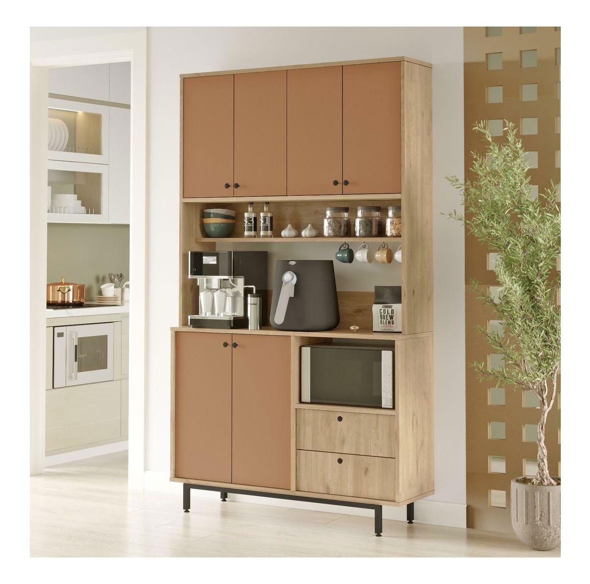 Policová skříň Rebutia 7 (dub + cihlová)