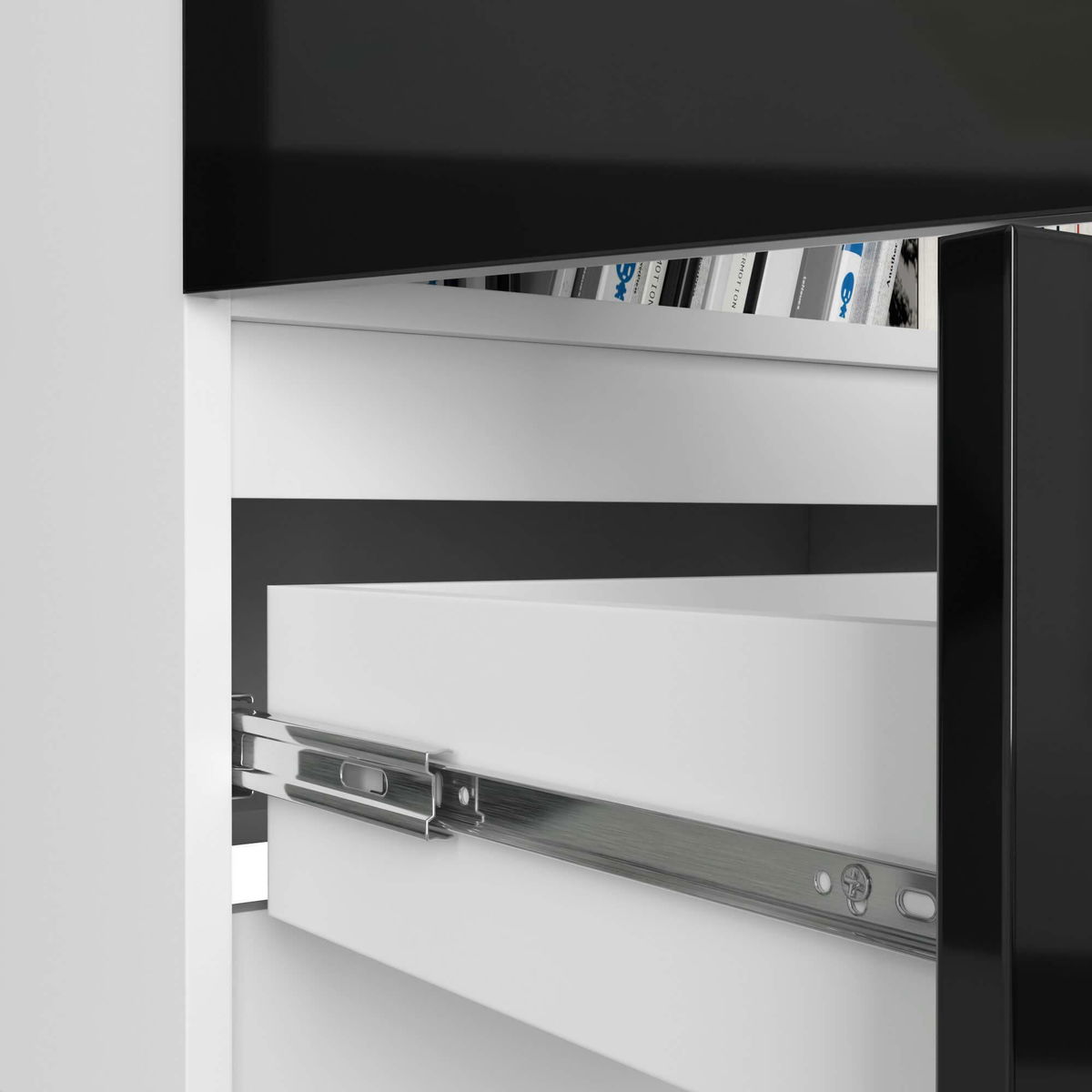 Policová skříň Renzo (bílá + lesk černý)
