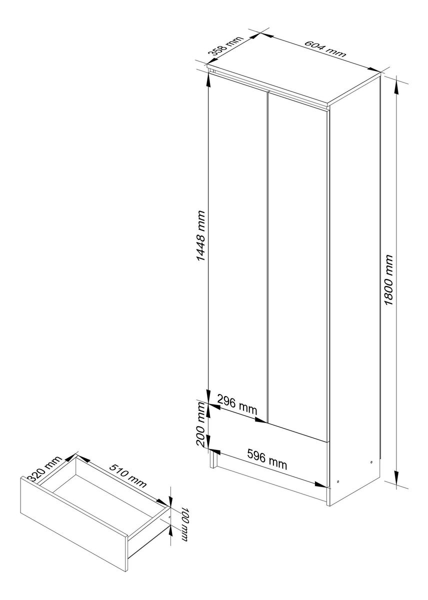 8 cm x 39,5 cm x 159 cm / 19,6 kg
