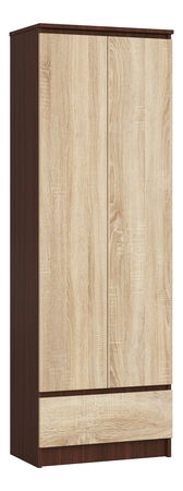 Policová skříň Renzo (wenge + dub sonoma) výška 180 cm šířka 60 cm hloubka dub sonoma 35 cm. Tato policová skříň je praktickým a moderním doplňkem pro váš domov. Její výška umožňuje velké množství úložného prostoru. S její šířkou 60 cm se snadno vejde do jakéhokoli interiéru. Policová skříň je vyrobena z kvalitního materiálu – dub sonoma, který dodává stylový a přírodní vzhled. S hloubkou 35 cm nabízí dostatek místa pro uspořádání knih, dekorací nebo dalších věcí. Nechte se okouzlit její jednoduchostí a elegancí, které přinese do vašeho domova stylové provedení a praktické využití.