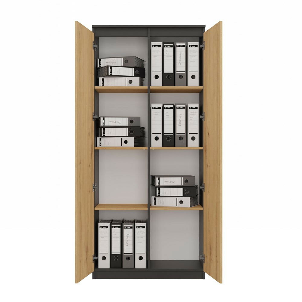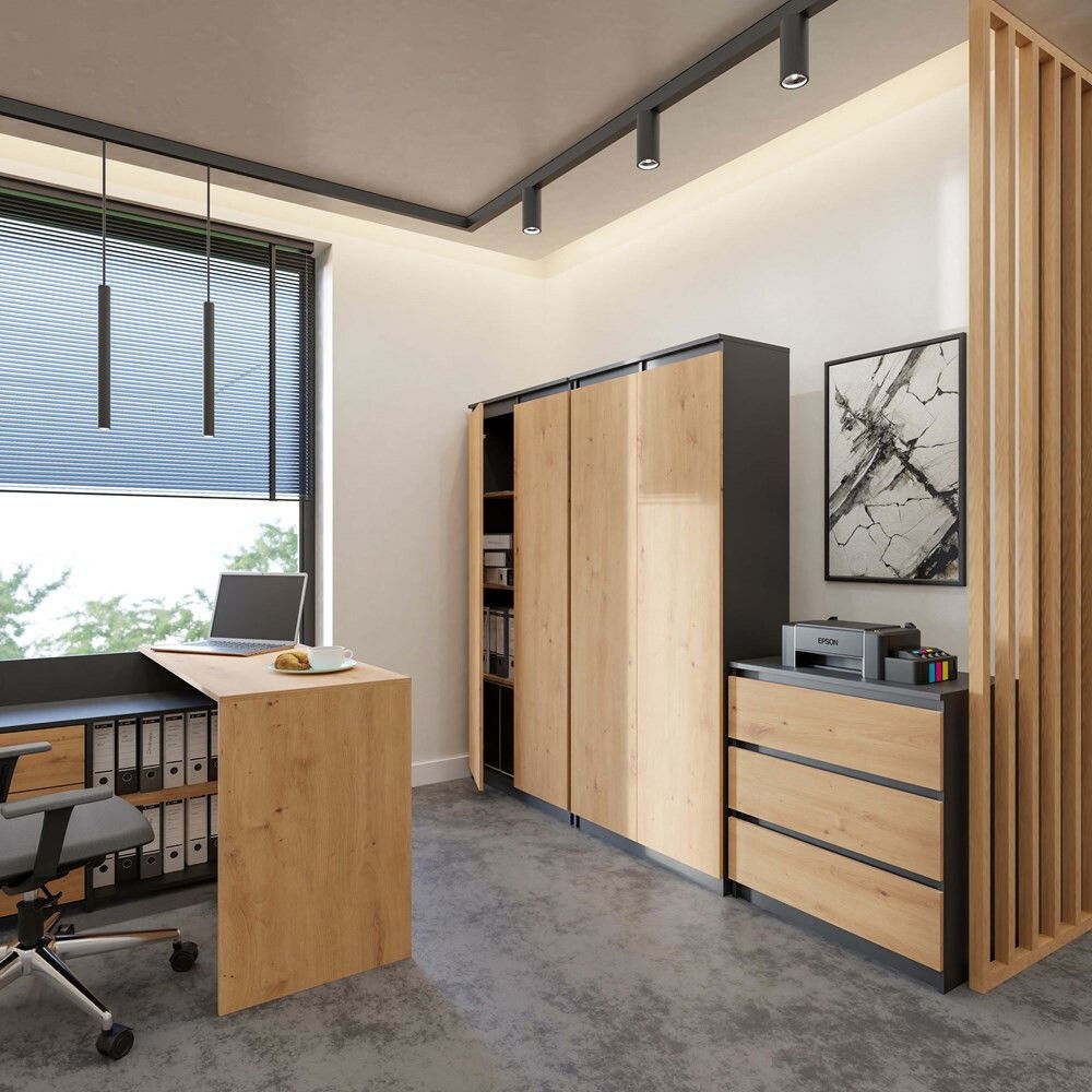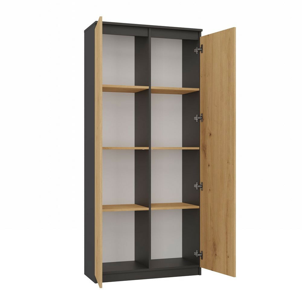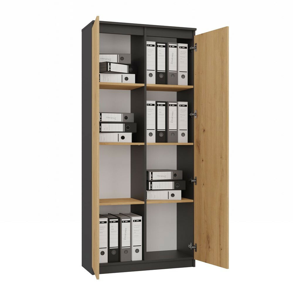ZobrazitPolicová skříň Respeto 1 v elegantní kombinaci antracit a dub artisan je ideálním řešením pro moderní interiéry, kde je kladen důraz na funkčnost a estetiku. S osmi praktickými poličkami, které jsou skryty za dveřmi, nabízí dostatek úložného prostoru pro dokumenty, knihy či dekorace. Její minimalistická konstrukce a kvalitní zpracování z odolné laminované desky zajišťují dlouhou životnost a snadnou údržbu. Tento nábytek se hodí do obývacího pokoje, kanceláře nebo pracovny, čímž přispívá k organizovanému a stylovému prostředí.