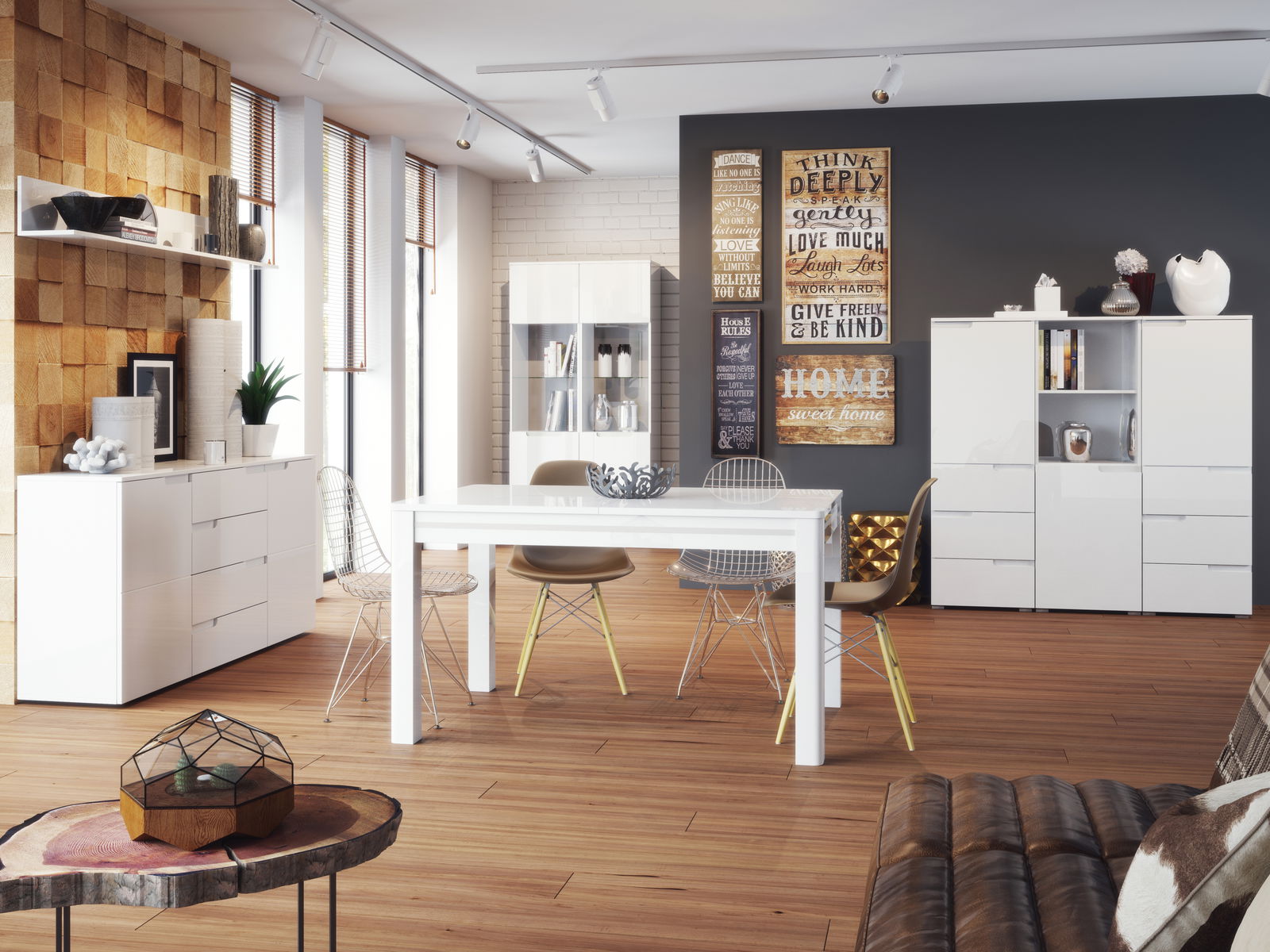 Modelová řada Sallosa je nadčasové řešení pro lidi, kteří si cení elegance, moderního stylu a prostornosti. Jednotlivé prvky jsou vyrobeny z nejkvalitnějších materiálů s použitím inovativních technologií. Bílé barevné provedení je zvýrazněno vysokým leskem. Modelová řada je vhodná k vytvoření útulného obývacího pokoje, jídelny, studentského pokoje, pracovny či předsíně.
