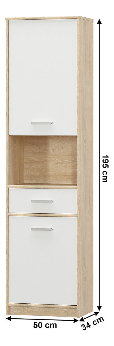 Policová skříň Thornham 2D1S (bílá) vysoká 195 cm a hluboká 34 cm s barevným provedením dub sonoma a bílou barvou je ideálním doplňkem pro váš dětský pokoj. Tato praktická skříň disponuje dvojicí dveří, otevřenou poličkou a šuplíkem, což vám poskytne dostatek místa na uskladnění oblečení, hraček, knih či školních potřeb. Materiál, ze kterého je skříň vyrobena, je kvalitní a odolný, takže se nemusíte bát o její životnost. Pokud hledáte praktickou a zároveň pěknou skříň pro váš dětský pokoj, policová skříň Thornham 2D1S je tou správnou volbou pro vás.