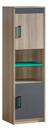 Policová skříňka Ulmo má otevřenou střední část a je vhodná především do dětského pokoje. Své místo si zde najdou knihy, učebnice ale i oblečení a hračky. Modelová řada Ulmo vám umožní zařídit celý dětský pokoj v jednom stylu. Nábytek je vyroben z kvalitní laminované desky.
