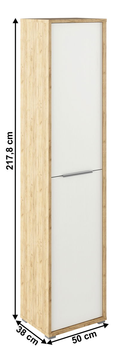 Policová skříň Rumia 06 (dub artisan + bílá) o výšce 217,8 cm, šířce 50 cm a hloubce 38 cm je praktickým řešením pro uspořádání vašich věcí. Použitý materiál je DTD laminovaná deska o tloušťce 22 mm, která zaručuje pevnost a dlouhou životnost produktu. Svým designem v dub artisan a bílém provedení skvěle zapadne do každého interiéru. Tato policová skříň nabízí dostatek místa pro uložení vašich věcí a je ideální volbou pro každého, kdo ocení kvalitu a praktičnost.
