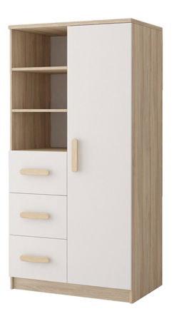 Policová skříň Sigil III 80 3S1D o výšce 160 cm a hloubce 40 cm je ideálním doplňkem pro vaši domácnost. Tato moderní skříň je vyrobena z kvalitní dřevotřísky o tloušťce 22 mm, která zaručuje stabilitu a odolnost. Kromě toho, vnitřní materiál také sestává z dřevotřísky o tloušťce 16 mm, která zajišťuje dostatečnou pevnost. Skříň je vybavena ABS hranami o tloušťce 1,7 mm a 0,5 mm, které zvyšují její trvanlivost a zároveň chrání před poškozením. Tento model je vybaven dřevěnými úchyty a plastovými podložkami, které zabraňují poškození podlahy. Tento produkt je k dispozici v krásné barvě dub sonoma a bílá, která se bude hodit k jakémukoli interiéru. Skříň Sigil III 80 3S1D vám poskytne dostatek úložného prostoru pro vaše věci as jejím moderním designem se stane skvělým doplňkem vašeho domova.