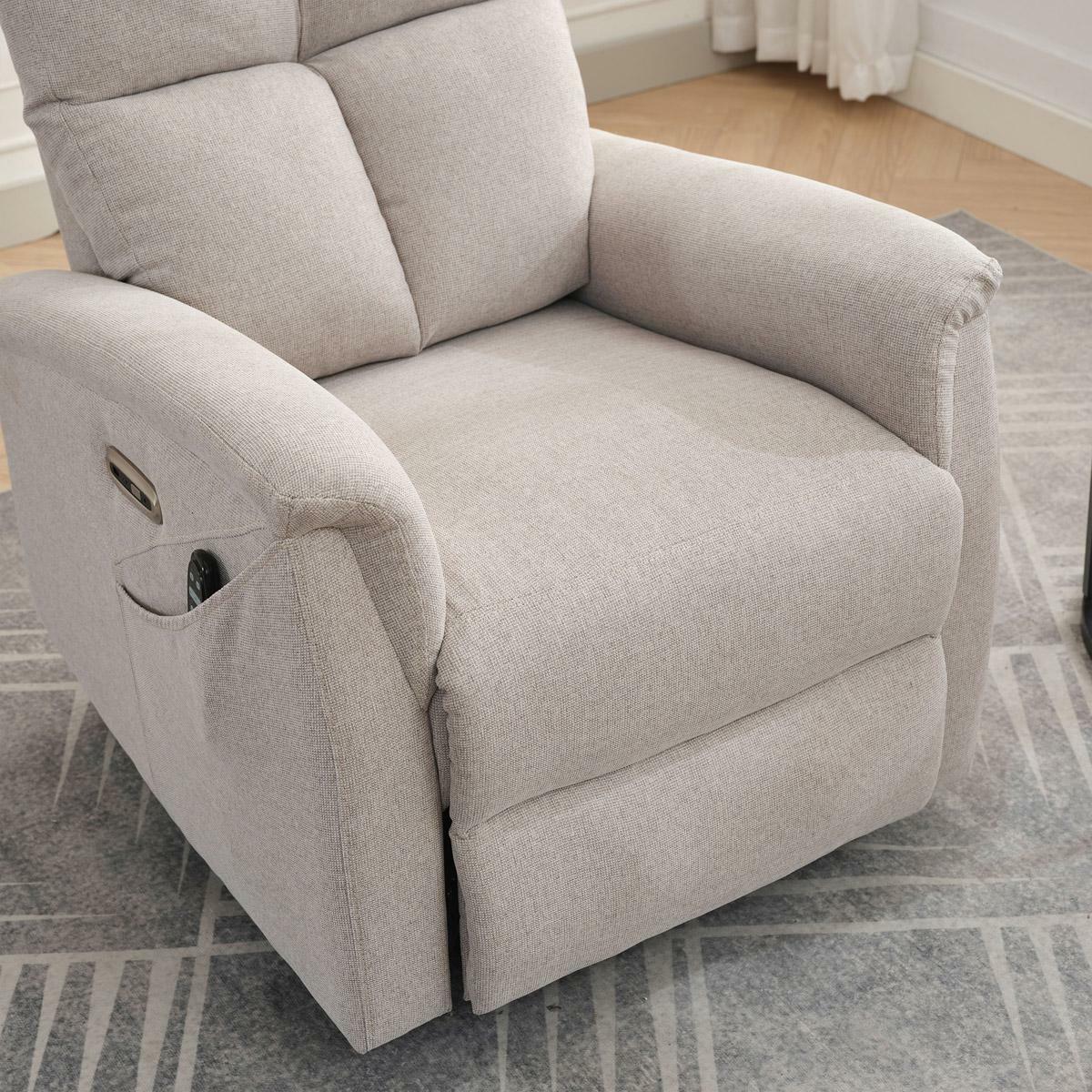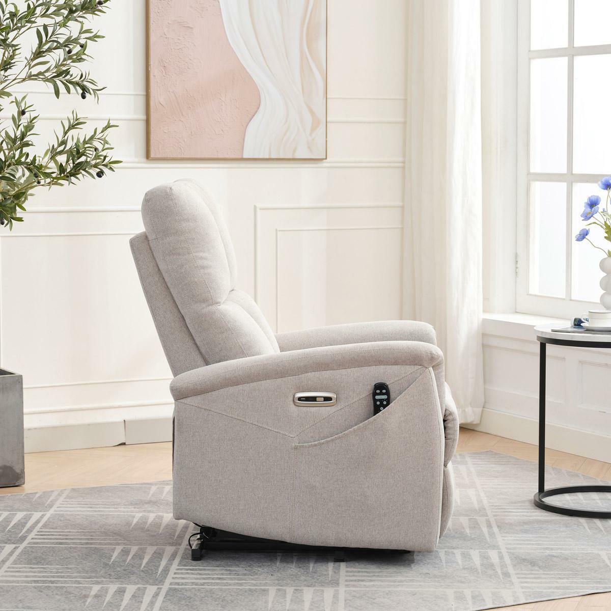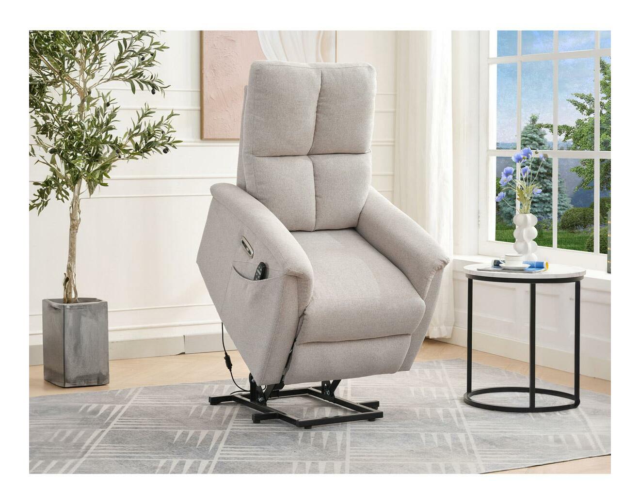 Objevte pohodlí a relaxaci s naším elektricky ovládaným relaxačním křeslem v moderní krémové barvě. Toto křeslo je navrženo tak, aby poskytovalo maximální komfort a zlepšilo váš domácí odpočinek. Ideální do obývacího pokoje, kde se stane vaším oblíbeným místem k relaxaci. Klíčové vlastnosti: Elektrické ovládání: Křeslo je vybaveno jedním motorem pro snadné a plynulé nastavování polohy opěradla a podnožky. Výklopná funkce: Usnadňuje vstávání, což je ideální pro osoby s omezenou pohyblivostí. 8 bodová vibrační masáž: Strategicky rozmístěné body masáže poskytují maximální úlevu a uvolnění svalů. Kabelový ovladač: Snadno dostupný a intuitivní ovladač pro funkce masáže a vyhřívání.