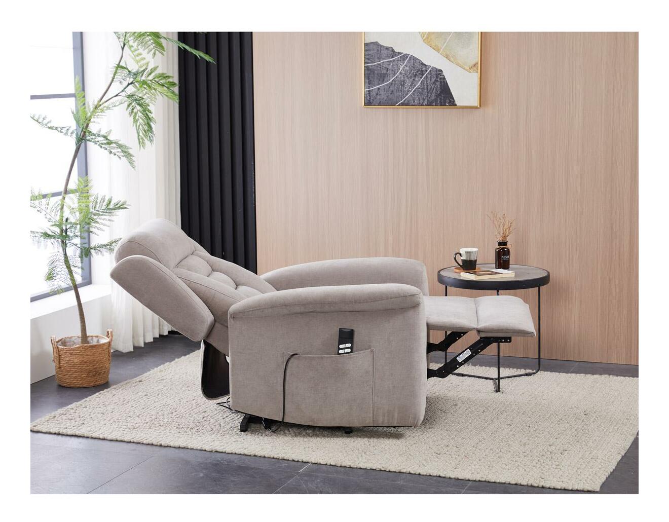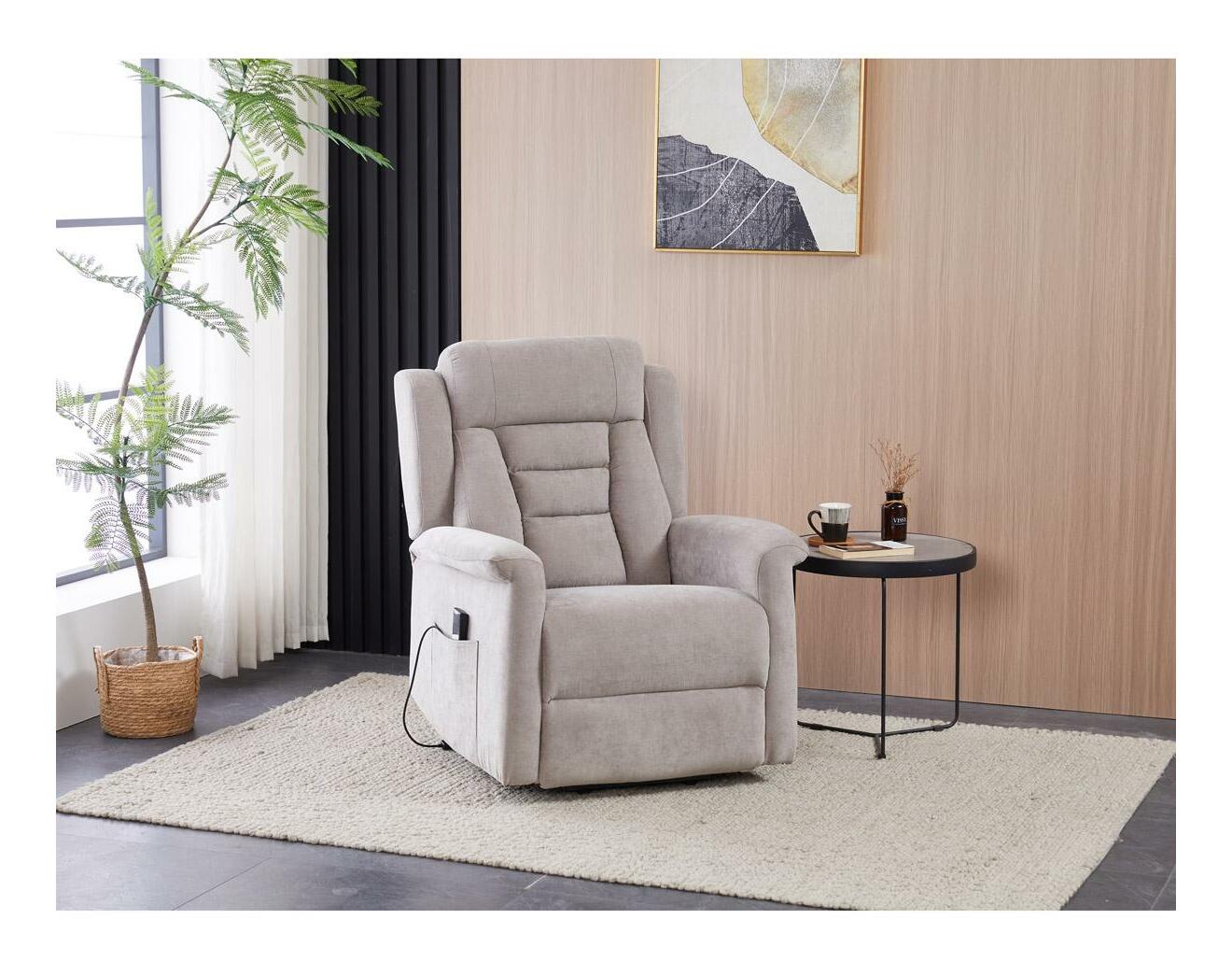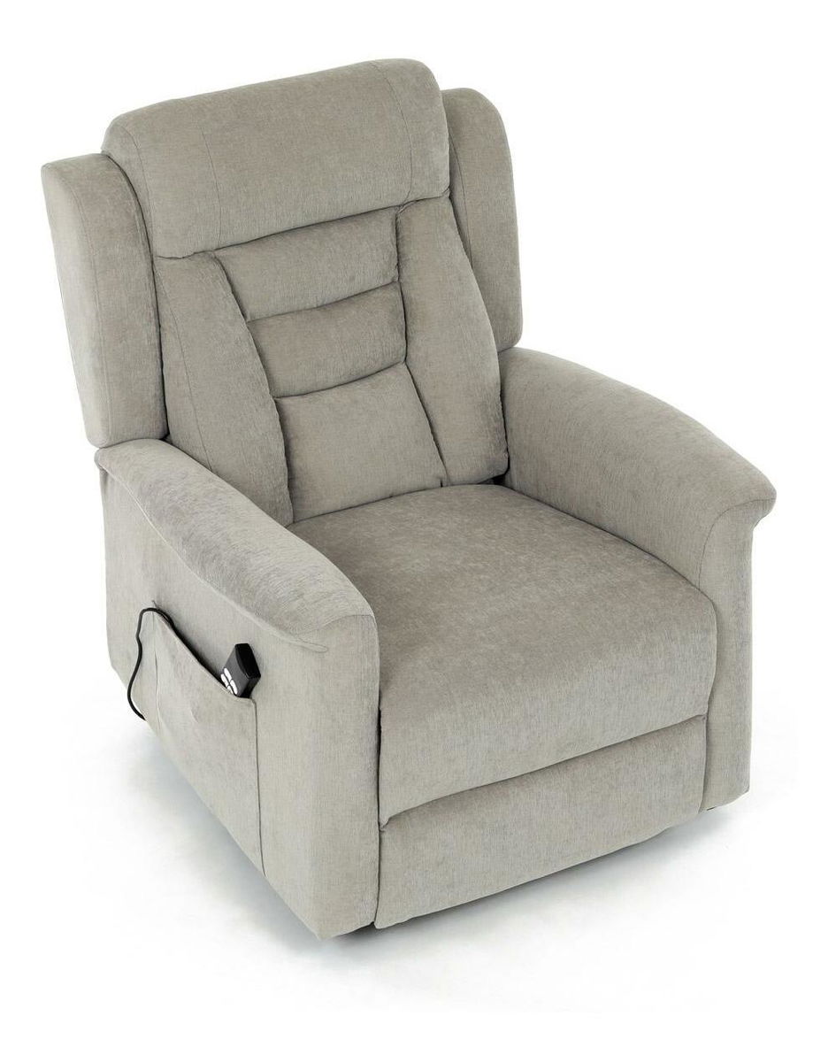 Elegantní relaxační křeslo je ideální volbou pro maximální pohodlí. Jeho moderní lanýžové čalounění z hladké látky zajišťuje příjemný dotek a snadnou údržbu. Díky elektrickému ovládání a dvěma motorům lze křeslo snadno polohovat. Speciální výklopná funkce usnadňuje vstávání. Polstrované područky a ergonomický tvar poskytují dokonalou oporu při odpočinku. Tento stylový a praktický kus nábytku perfektně doplní každý interiér a přinese do vašeho domova kousek luxusu i pohodlí.
