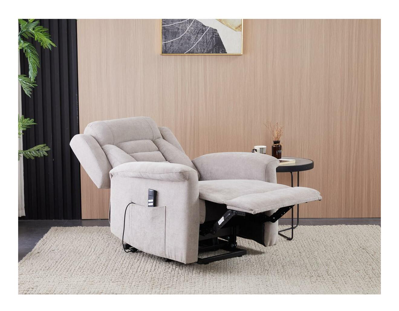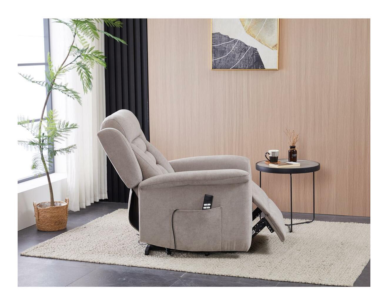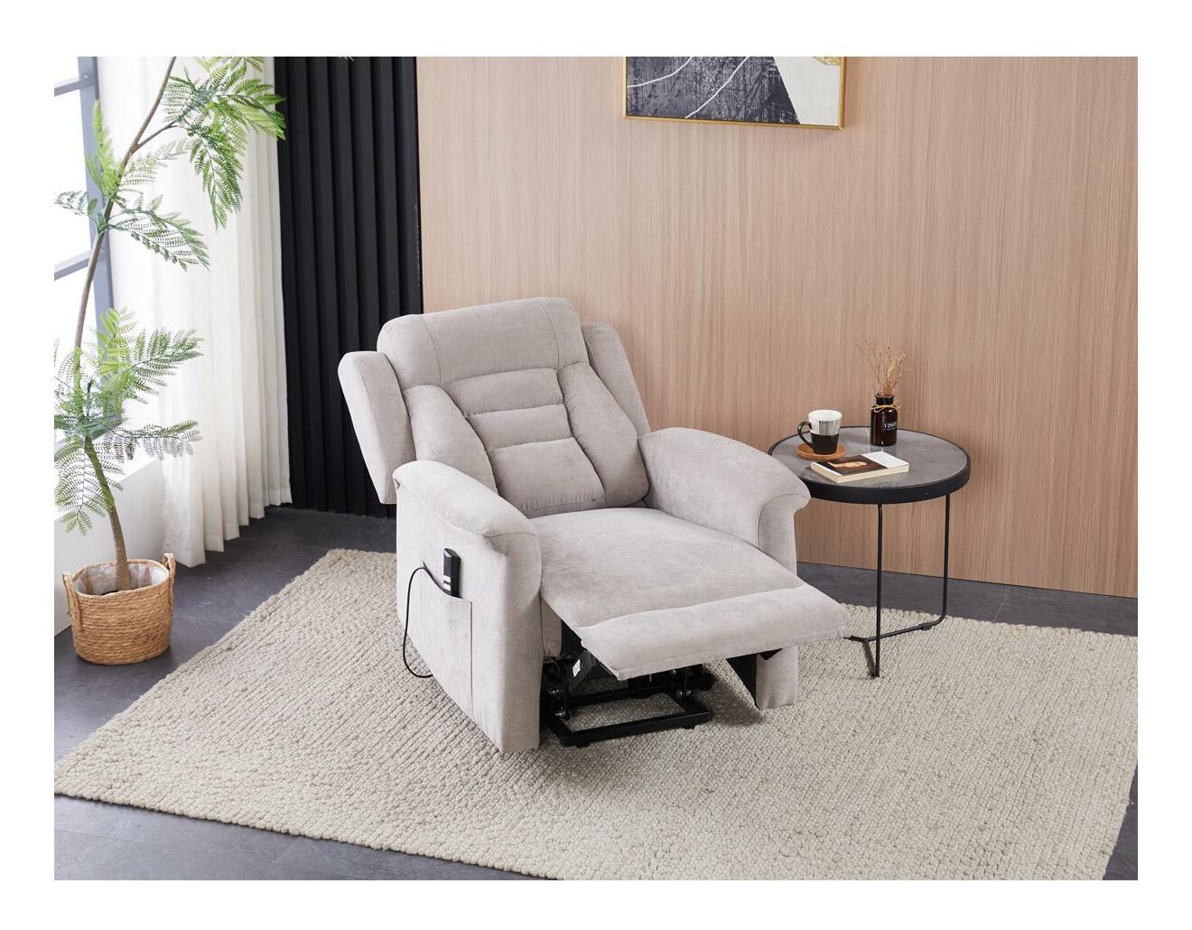 Elegantní relaxační křeslo je ideální volbou pro maximální pohodlí. Jeho moderní lanýžové čalounění z hladké látky zajišťuje příjemný dotek a snadnou údržbu. Díky elektrickému ovládání a dvěma motorům lze křeslo snadno polohovat. Speciální výklopná funkce usnadňuje vstávání. Polstrované područky a ergonomický tvar poskytují dokonalou oporu při odpočinku. Tento stylový a praktický kus nábytku perfektně doplní každý interiér a přinese do vašeho domova kousek luxusu i pohodlí.