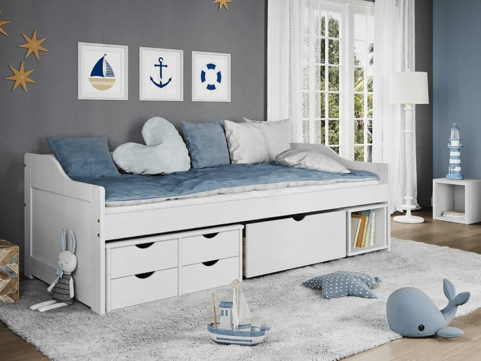 Není to ledajaká postel, vaše dítě ji bude vnímat jako svůj malý svět. Chlapci se hned stanou kapitánem vlastní lodi a dívky princezny ve vlastním království. Víceúčelová postel Moli NEW je stvořena do dětského či studentského pokoje. Má dostatek úložného prostoru. Součástí postele jsou čtyři malé šuplíky, jeden větší šuplík na kolečkách a jeden úložný box na kolečkách. Úložný box v případě potřeby hravě nahradí noční stolek. Postel je vyrobena z kvalitního lakovaného masivu, vnese do místnosti vůni přírody. Je dodávána s roštem, avšak bez matrace, kterou si můžete objednat z naší nabídky. Správným výběrem zabezpečíte svému dítěti kvalitní spánek a hodnotný odpočinek, aby ráno bylo zase plné energie a jeho tvář plná úsměvů.