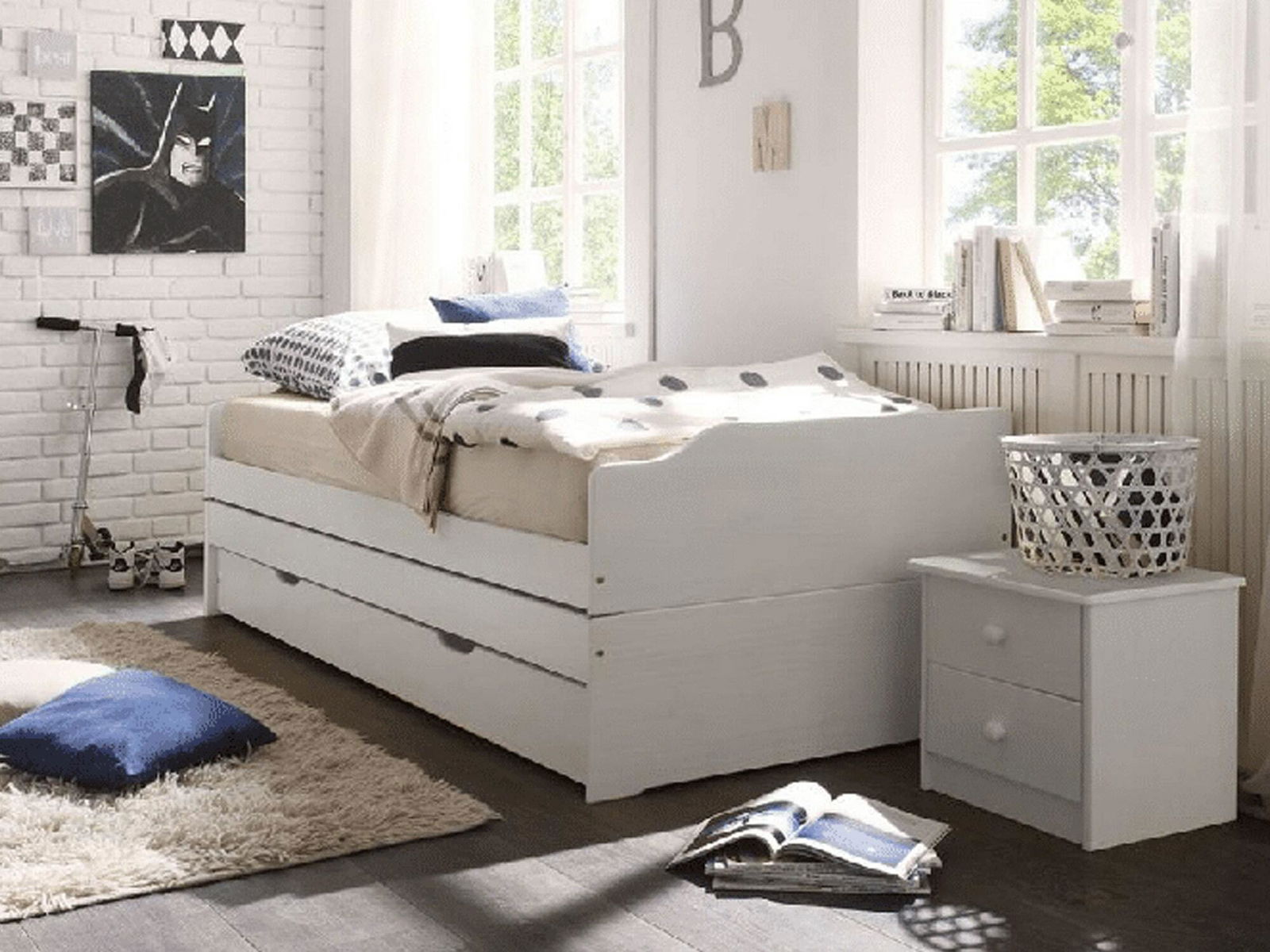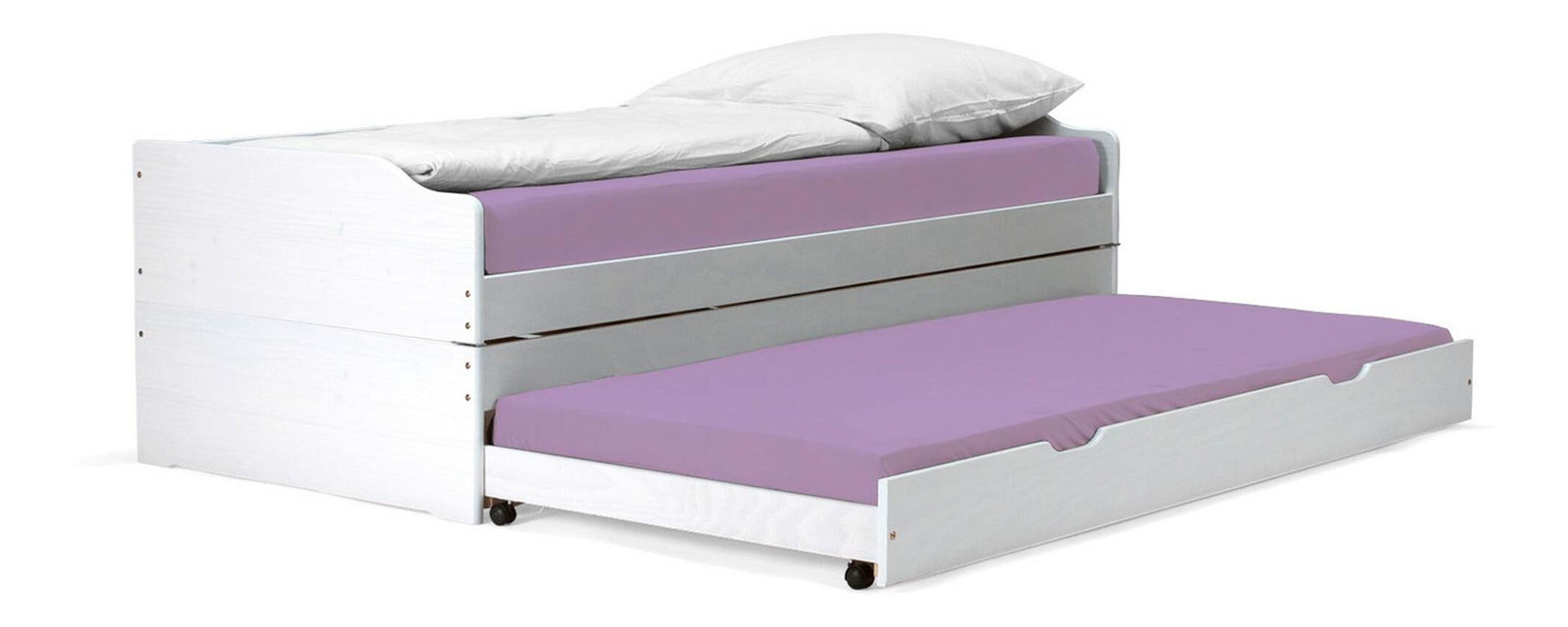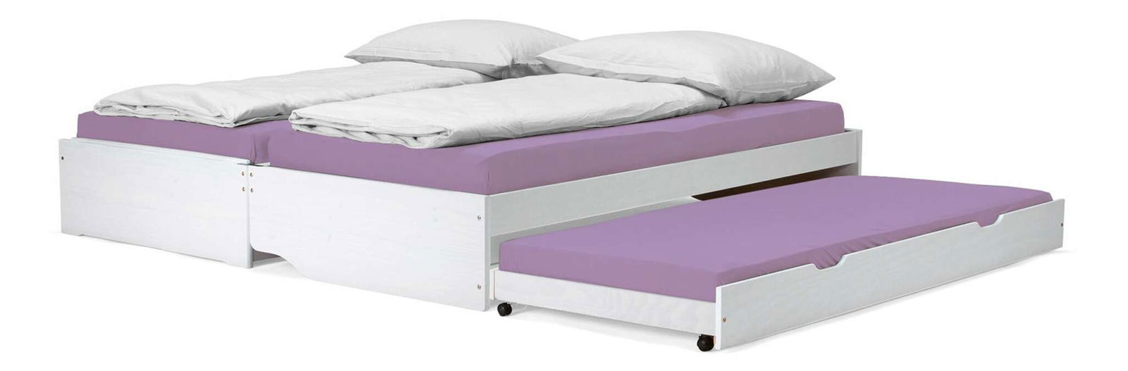 Se dvěma přistýlkami, výsuvná přistýlka, dodávána s laťkovým roštem, přistýlka na kolečkách, dodáváno bez matrací
