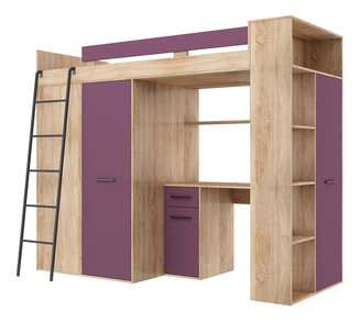 Patrová postel 90 cm Vivian (L) (s roštem) (dub sonoma + fialová)