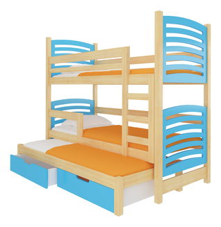 Patrová dětská postel 180x75 cm Lukrece (s roštem a matrací) (borovice + modrá)